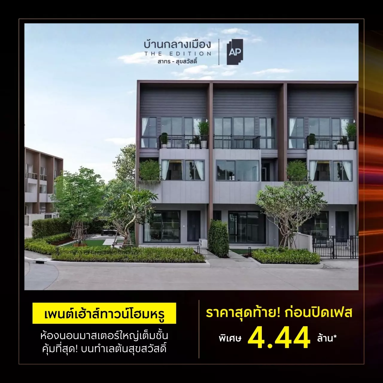 #APThai #APTownhome #APLivingQuality #ชีวิตดีๆที่เลือกเองได้ #บ้านกลางเมือง #บ้านกลางเมืองTheEdition #สุขสวัสดิ์ #ประชาอุทิศ #ทุ่งครุ #สาทร #สุขสวัสดิ์ลดทั้งโซน #ลดทั้งโซนครั้งสุดท้าย