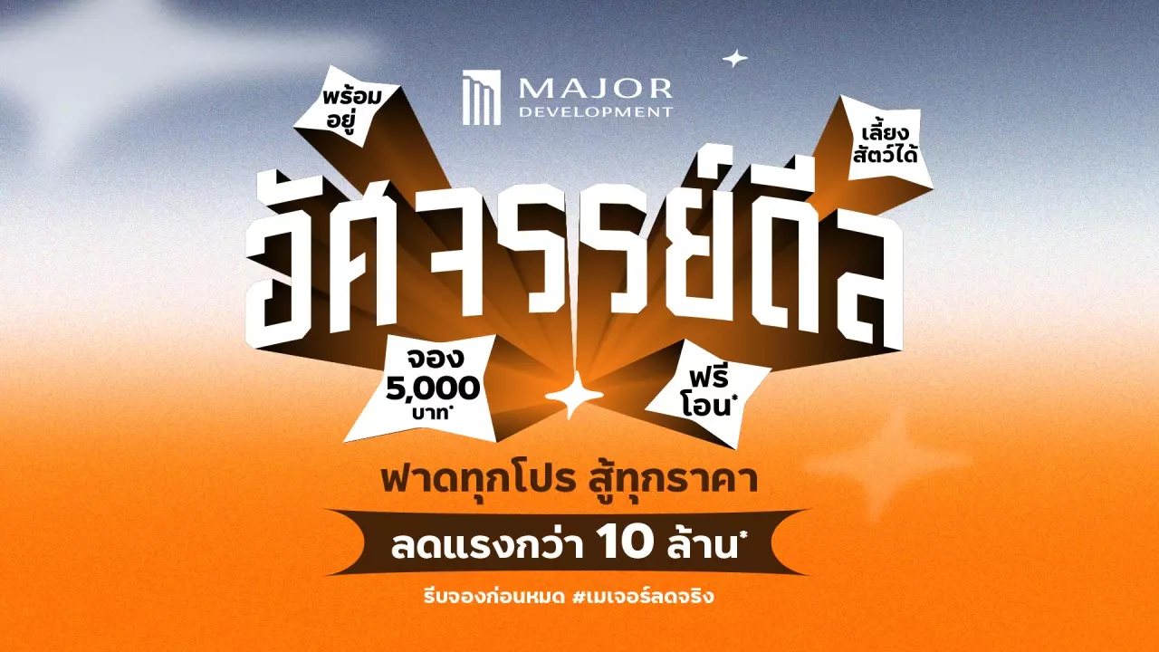 เมเจอร์ ดีเวลลอปเม้นท์ สร้างอัศจรรย์ท้ายปี! ลดแรงโค้งสุดท้าย ส่ง “อัศจรรย์ดีล” แคมเปญลดแรงแบบไม่เคยมีมาก่อน พร้อมกระหน่ำ 8 โครงการบ้านหรู-คอนโดเลี้ยงสัตว์ได้ ทำเลกรุงเทพฯ พัทยา หัวหิน จัดหนักลดสูงสุดกว่า 10 ล้านบาท!