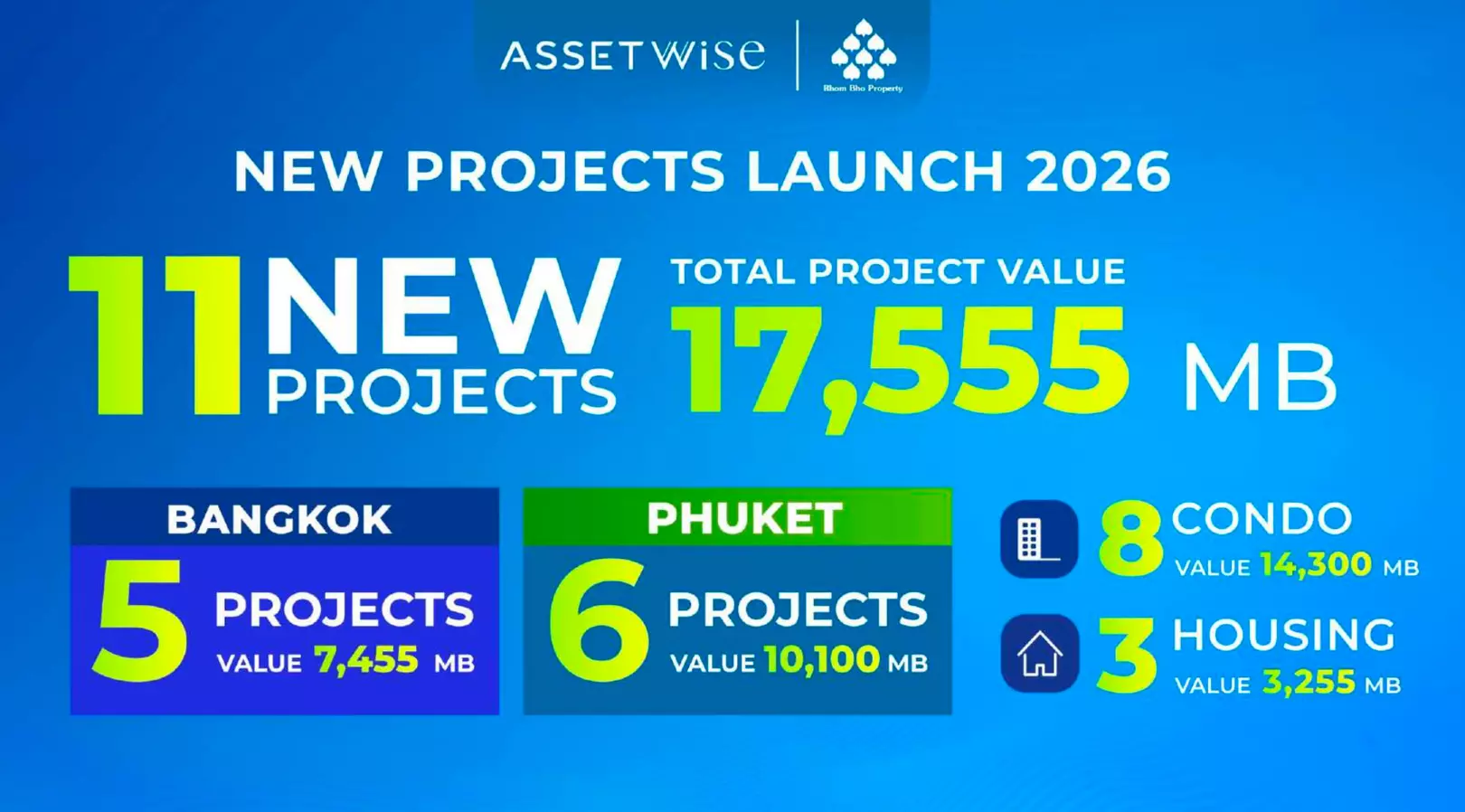 AssetWise วางหมากรบปีนี้ด้วยการเปิดตัว 11 โครงการใหม่ มูลค่ารวม 17,555 ล้านบาท โดยแบ่งกำลังรบออกเป็น 2 สมรภูมิหลัก: