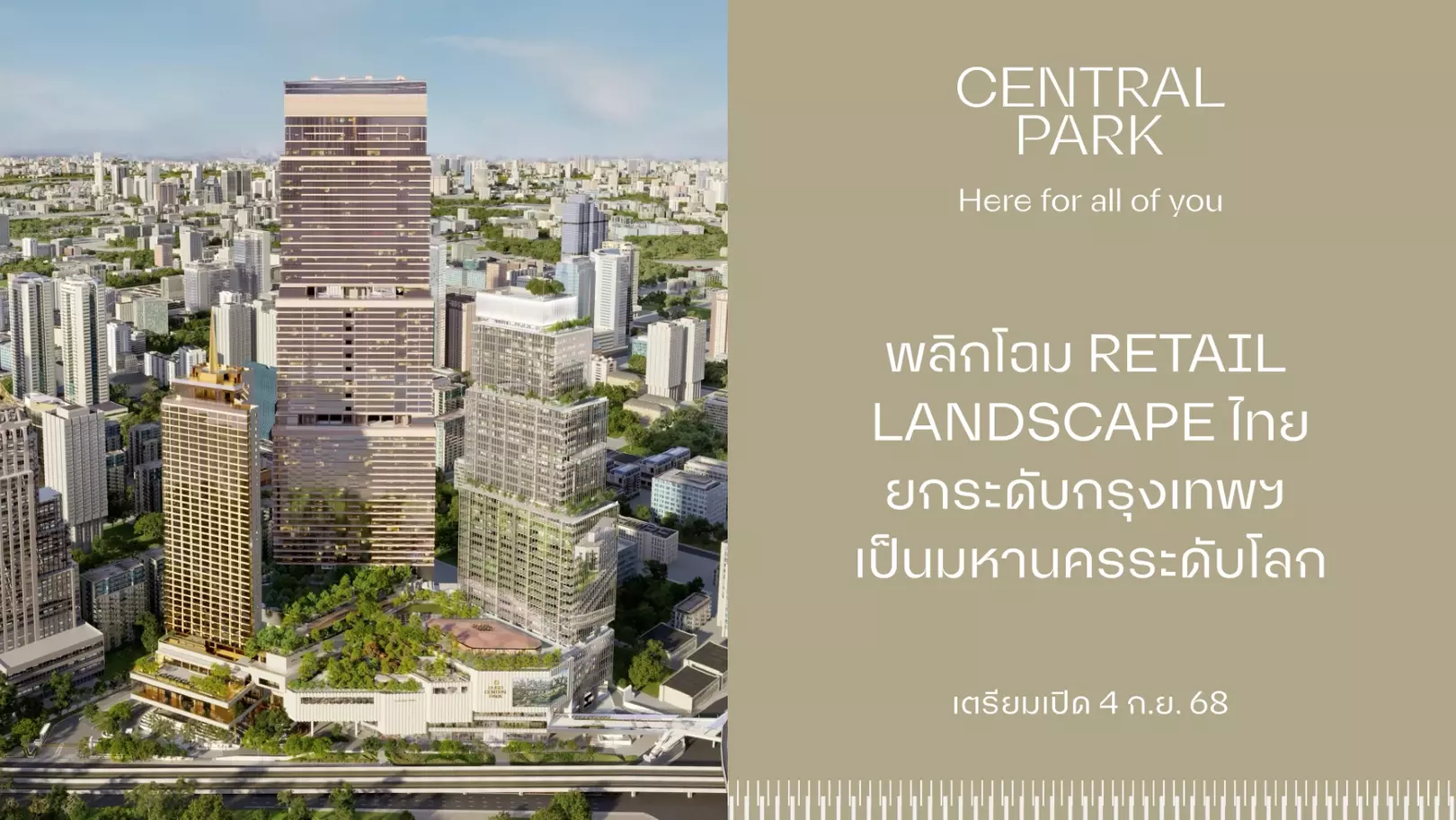 บริษัท เซ็นทรัลพัฒนา จำกัด (มหาชน) ผู้นำด้านการพัฒนาอสังหาริมทรัพย์ไทยเพื่อความยั่งยืน เตรียมเปิด “เซ็นทรัล พาร์ค” ศูนย์การค้าลำดับที่ 43 พื้นที่อาคารรวม (GBA) 130,000 ตร.ม. เป็นส่วนหนึ่งของโครงการมิกซ์ยูสคุณภาพระดับโลก ดุสิต เซ็นทรัล พาร์ค มูลค่าโครงการรวม 46,000 ล้านบาท ที่รวมศูนย์การค้า อาคารสำนักงาน โรงแรม และที่พักอาศัย เพื่อปั้นแลนด์มาร์กใหม่ใจกลางกรุงเทพฯ พลิกโฉมธุรกิจรีเทลด้วยแรงบันดาลใจจากภาพอนาคตของเมือง พร้อมเผยกลยุทธ์การสร้าง “ศูนย์การค้าแห่งอนาคต” รองรับไลฟ์สไตล์ใหม่ของคนเมืองครบทุกมิติที่สุด และยกระดับกรุงเทพฯ สู่มหานครระดับโลก เปิดเฟสแรก 4 ก.ย. 68 ภายใต้คอนเซปต์ ‘Here for all of you’ โดยแบรนด์ เซ็นทรัล พาร์ค ประกอบด้วย ศูนย์การค้า และอาคารสำนักงาน
