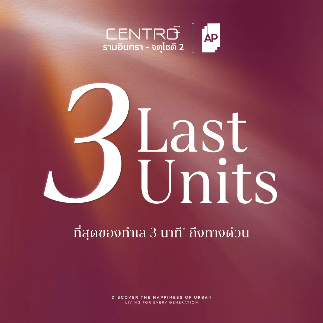 🏠 โค้งสุดท้าย! 3 ยูนิตพิเศษ “CENTRO รามอินทรา – จตุโชติ 2” กับข้อเสนอที่ห้ามพลาดก่อนปิดโครงการ!
