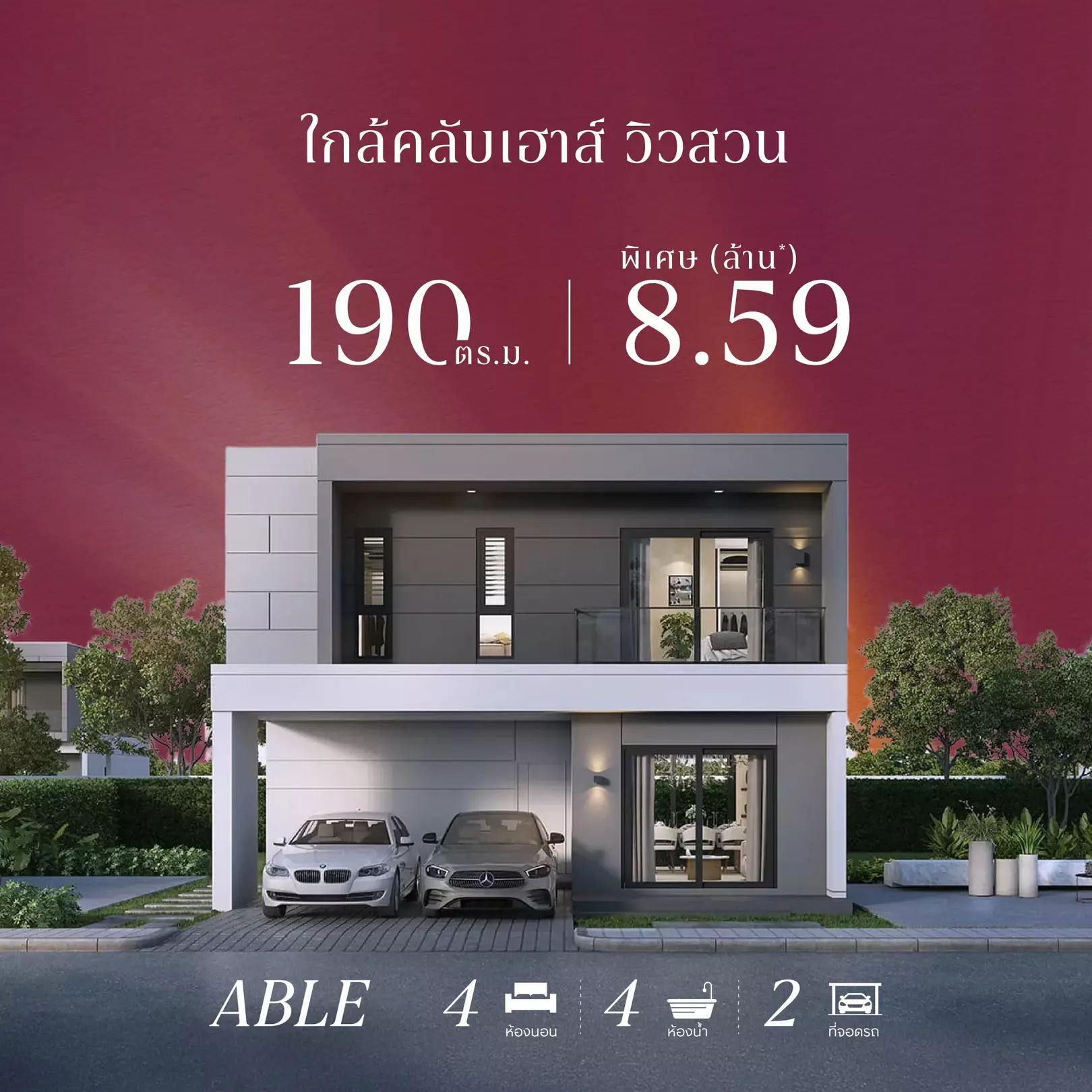 ฟังก์ชัน: 4 ห้องนอน / 4 ห้องน้ำ / 2 ที่จอดรถ