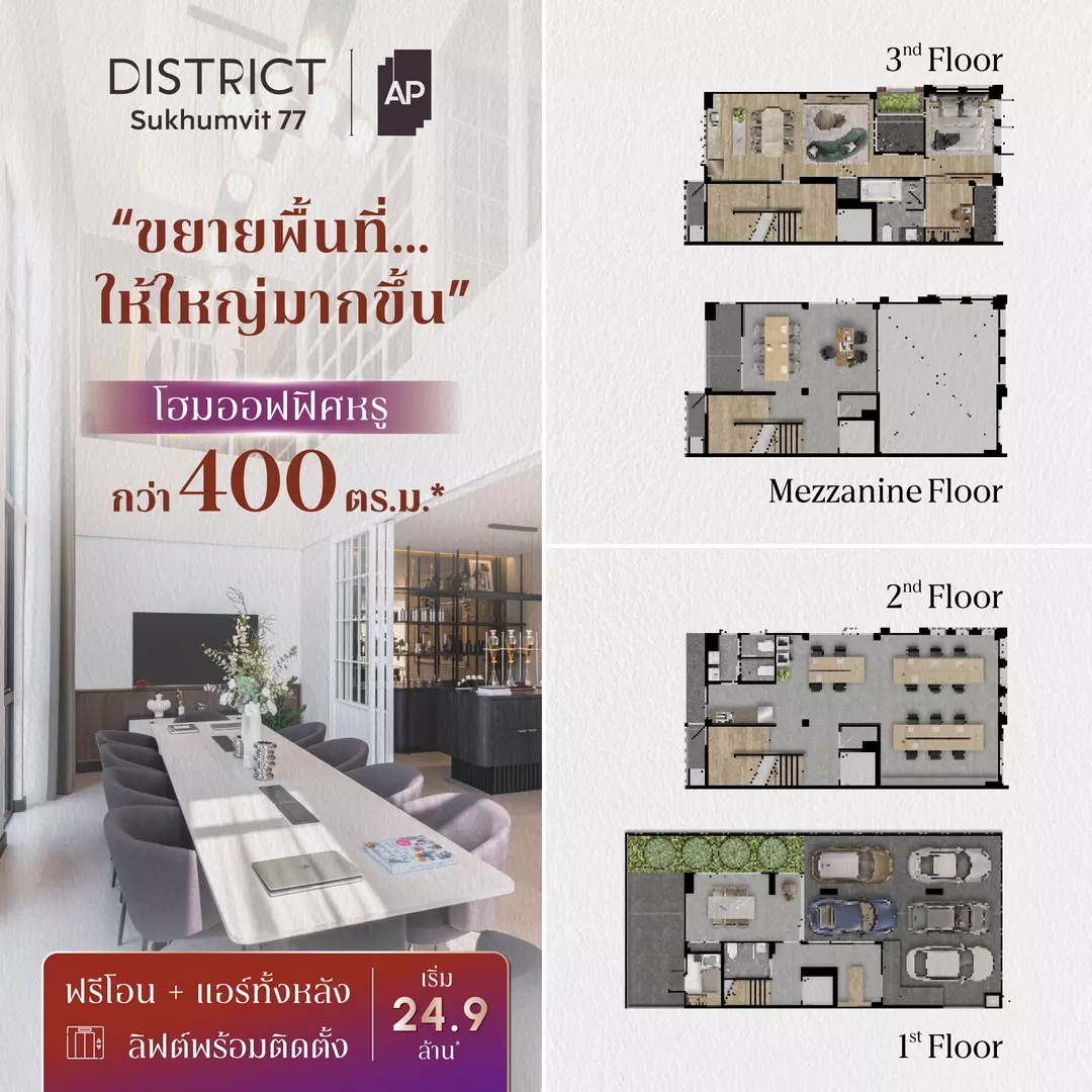 DISTRICT Sukhumvit 77 (ดิสทริค สุขุมวิท 77) โฮมออฟฟิศสูง 3.5 – 5 ชั้นสไตล์นิวยอร์ค ในซอยอ่อนนุช 21 เพียง 26 ยูนิต จาก AP Thailand