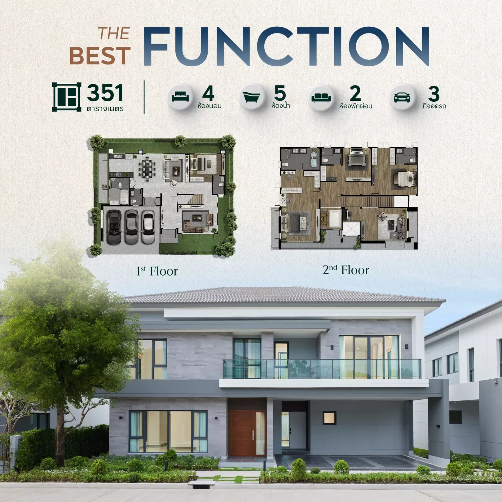 ฟังก์ชัน 4 ห้องนอน 5 ห้องน้ำ 3 ที่จอดรถ
