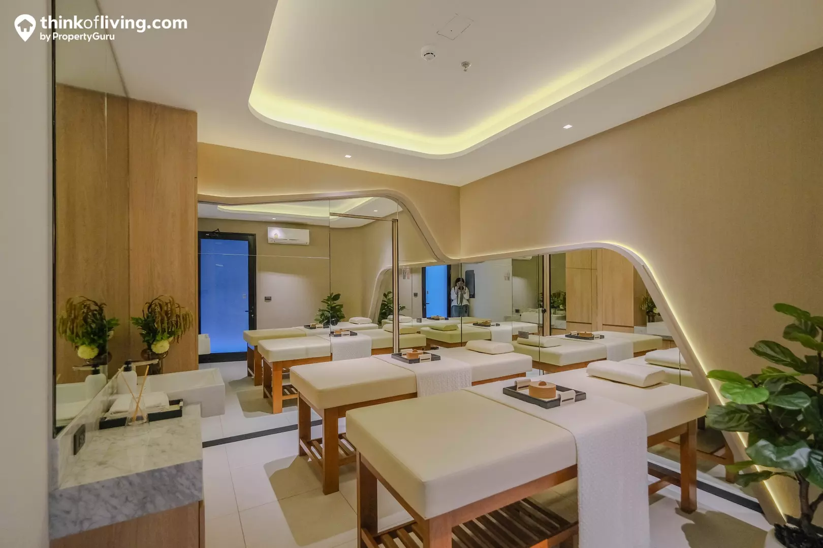 หรือใครเป็นสายชิลเน้นผ่อนคลาย ดูแลสุขภาพ ชั้นนี้ก็มี Massage Room ให้สามารถเรียกพนักงานมานวดผ่อนคลายเองได้ ข้างในมีเตียงและอุปกรณ์เตรียมไว้ให้ พร้อมห้องล้างตัว ใช้งานได้เหมือนอยู่ในสปา ติดกันเป็น Consult Room เป็นห้องปรึกษาที่โครงการจัดเตรียมไว้ให้ โดย Origin จะมีผู้เชี่ยวชาญคอยดูแลทั้งด้านสุขภาพกาย ความงามและสุขภาพจิตเลย