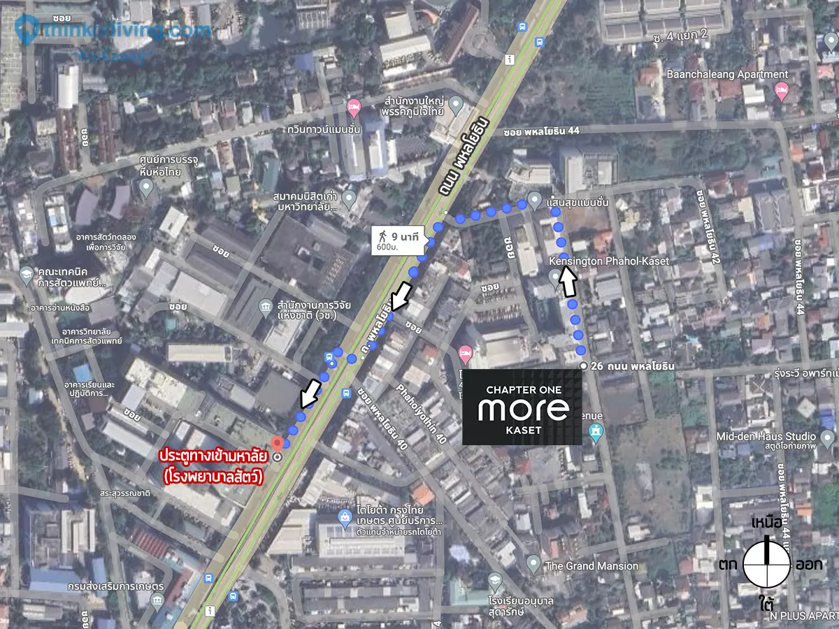 โครงการ Chapter One More Kaset เป็นคอนโดที่ตั้งอยู่ภายในซอยพหลโยธิน 40 แยก 1 ที่เข้า-ออกได้ทั้งจากซอยพหลโยธิน 40 และ 42 สามารถเชื่อมต่อไปถนนได้หลายสาย มี Highlight ที่ตั้งโครงการอย่างใกล้มหาวิทยาลัยเกษตรศาสตร์ 600 เมตร ให้น้องๆเดินไปเรียนได้ง่ายๆ จะตื่นสายขนาดไหนก็ไปทันแน่นอน นอกจากนั้นยังใกล้ BTS สถานีมหาวิทยาลัยเกษตรศาสตร์ 720 เมตร หรือใครไม่อยากเดินเหนื่อยก็มี Shuttle Service รถบริการรับ-ส่งไป BTS ด้วยนะ อีกทั้งตั้งอยู่ฝั่งตรงข้ามกับมหาวิทยาลัยและภายในซอย จึงได้ความเงียบสงบและเป็นส่วนตัวมากกว่าโซนคอนโดรอบมหาวิทยาลัยเกษตรศาสตร์ด้วย