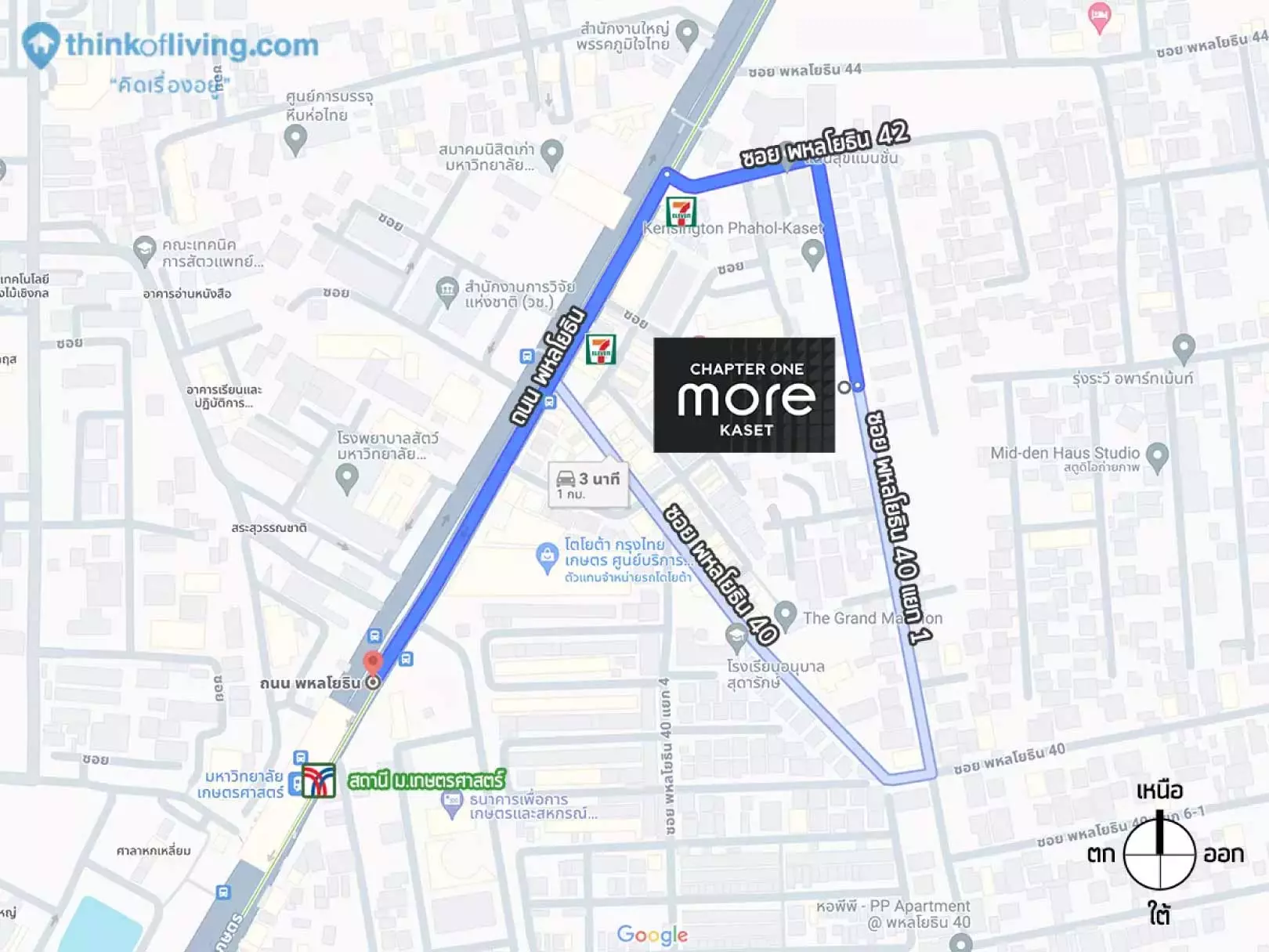 ตัวโครงการตั้งอยู่ในซอยพหลโยธิน 40 แยก 1 ใกล้ประตูมหาลัย 600 เมตรและใกล้ BTS สถานีมหาวิทยาลัยเกษตรศาสตร์ 720 เมตร จึงเป็นทำเลที่เหมาะกับน้องๆนิสิต บุคลากรในมหาวิทยาลัยและพนักงานออฟฟิศที่ใช้รถไฟฟ้าในการเดินทางไปทำงานเป็นประจำนั่นเอง อีกทั้งเป็นทำเลที่น่าสนใจสำหรับเหล่านักลงทุนด้วย เพราะมี Demand ความต้องการอยู่อาศัยบนทำเลสูง สังเกตจากโครงการส่วนใหญ่บนย่านนี้สามารถปิดการขายได้เร็ว แต่ก็อย่าลืมว่าคู่แข่งด้านการลงทุนปล่อยเช่าก็มีเยอะด้วยเช่นกัน ทำให้เป็นอีกจุดที่ต้องคำนึงถึงด้วยนะคะ