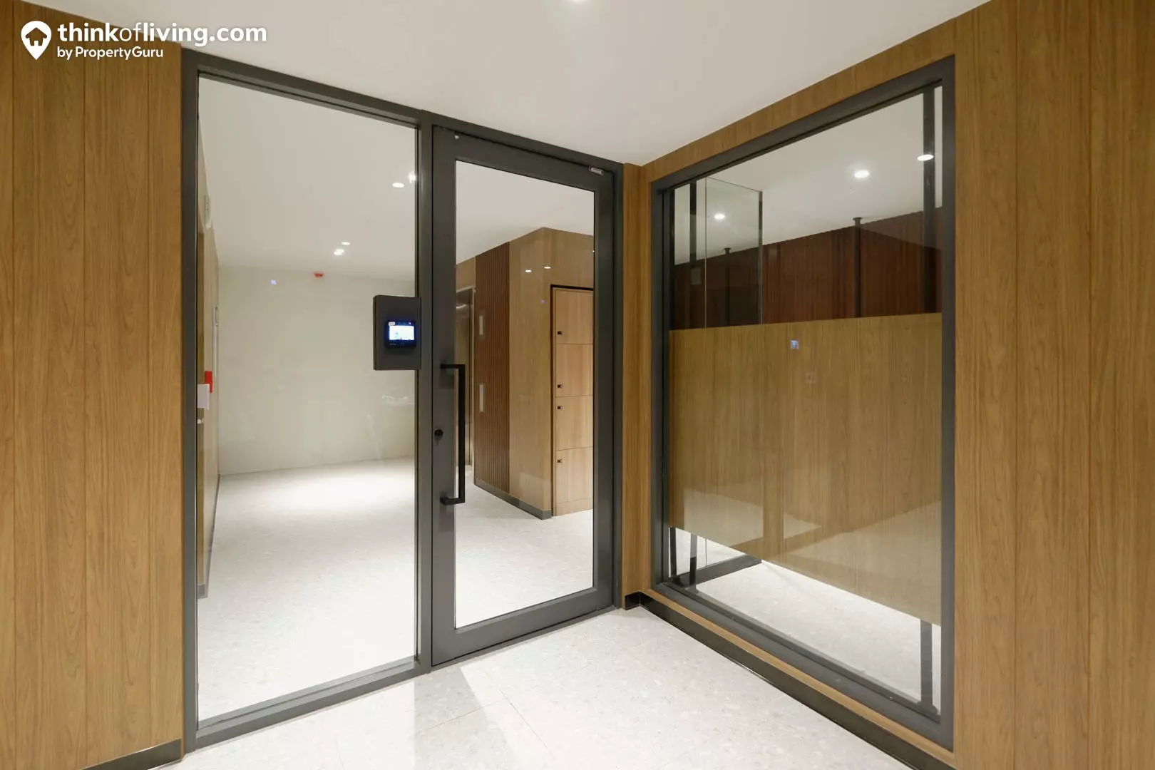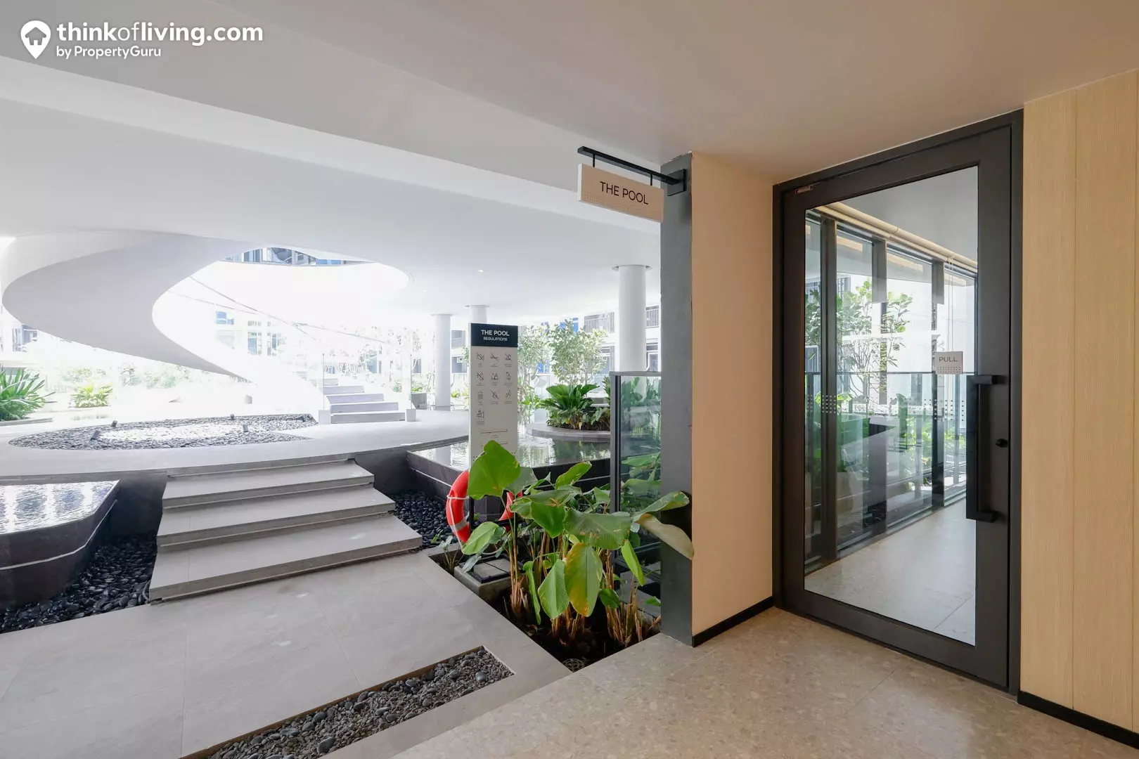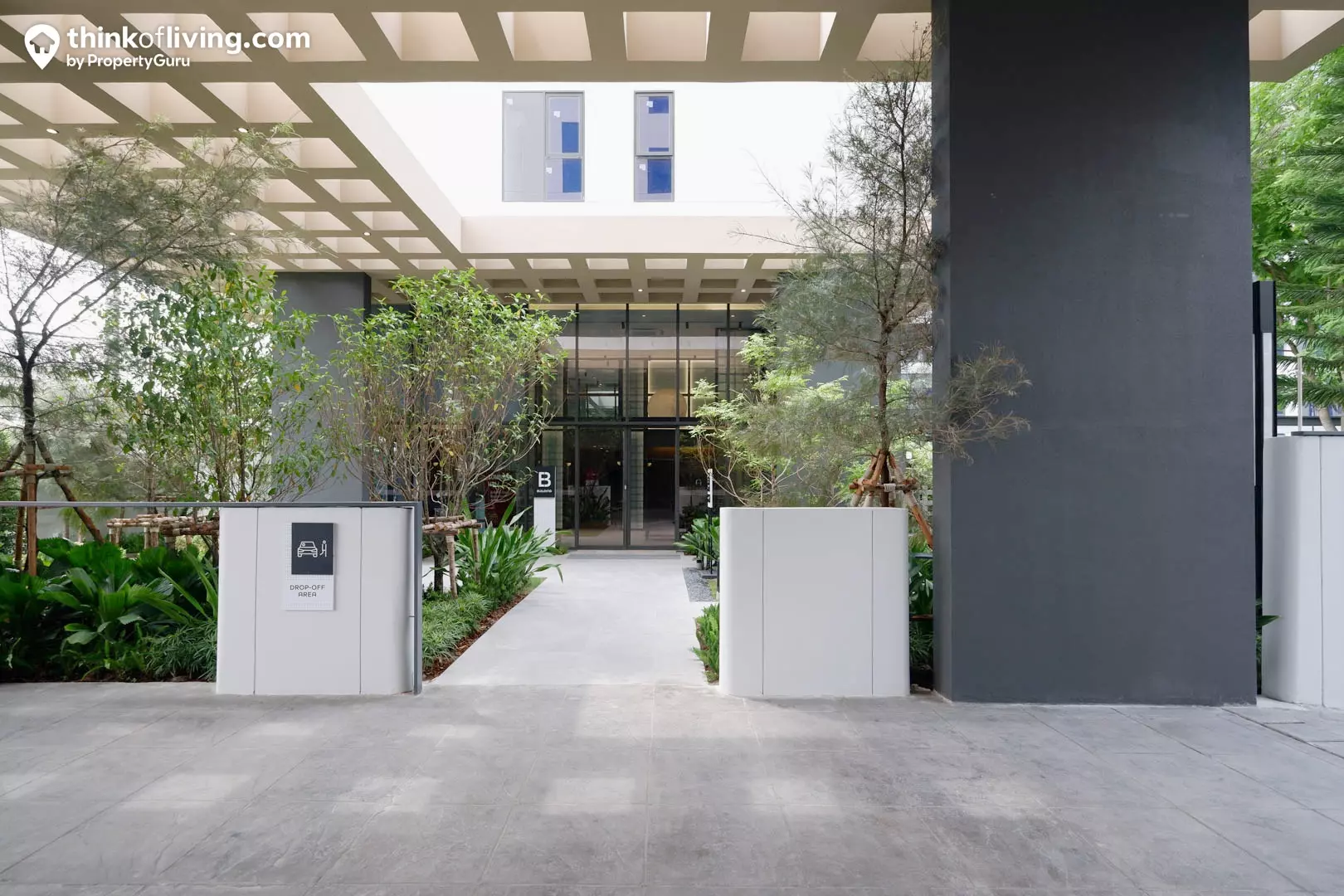 สำหรับประตูทางเข้า-ออกโครงการจะเป็นรั้วกั้นไม้กระดก เมื่อเข้าโครงการมาจะต้องตรงเข้าไปด้านในและวนรอบอาคารเพื่อออกจากโครงการค่ะ บริเวณด้านข้างซุ้มประตูนี้จะมีป้อม รปภ. คอยตรวจเช็ก-รักษาความปลอดภัย นอกจากนั้นทางโครงการได้มีรั้วกั้นรางเลื่อนบริเวณด้านหน้าโครงการอยู่อีกชั้นด้วยนะ ซึ่งจะใช้เป็น Night Gate เพื่อเปิด-ปิดในช่วงกลางคืนเท่านั้น ทำให้เหมือนได้เป็น Double Security Gate เลยนั่นเอง