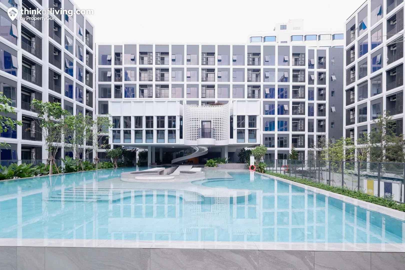 - ออกแบบทั้ง 3 อาคาร โอบล้อมพื้นที่ Court ตรงกลาง ทำให้ห้องที่หันเข้ามาด้านในจะได้วิวและบรรยากาศสวยๆของพื้นที่ส่วนกลาง