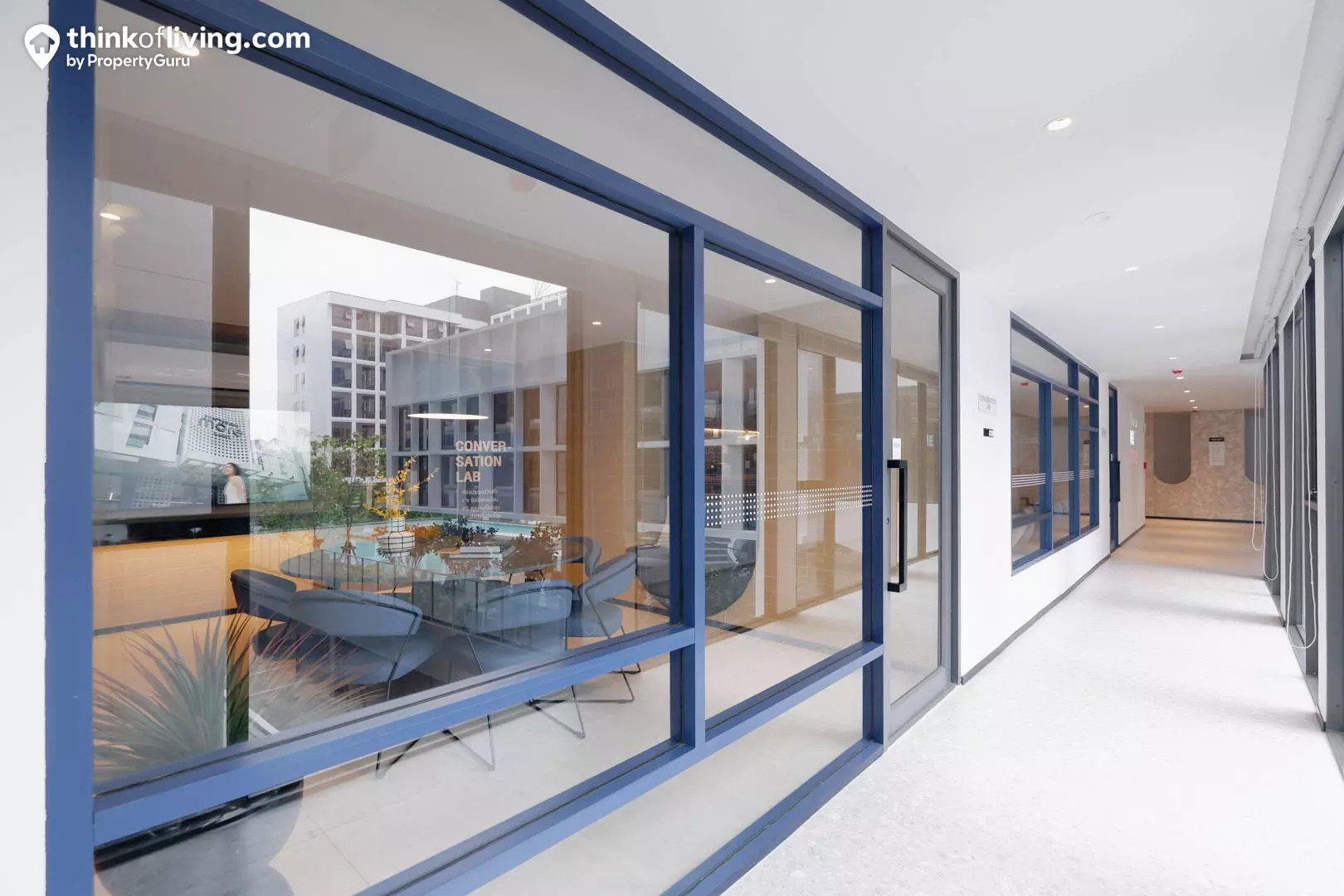 สำหรับพื้นที่ส่วนกลางในชั้น 1 นี้ จะเน้นเป็นพื้นที่ต้อนรับหรือนั่งพักผ่อน ทางโครงการจะออกแบบ Commune Hall (Lobby) กระจายอยู่ทั้ง 3 อาคารเลยนะคะ แต่สำหรับ Building A จะมี Pick Up & Delivery Point (พื้นที่วางของ Delivery) และ Building B จะมี Conversation Lab (ห้องประชุม) และ Green Club (พื้นที่สวนสีเขียว) ช่วยเพิ่มบรรยากาศน่าอยู่อาศัยและสดชื่นแล้ว ยังเป็น Buffer Zone เพิ่มความเป็นส่วนตัวจากทางเข้า-ออกของโครงการด้วยค่ะ