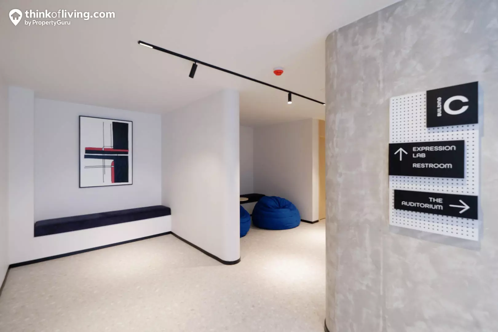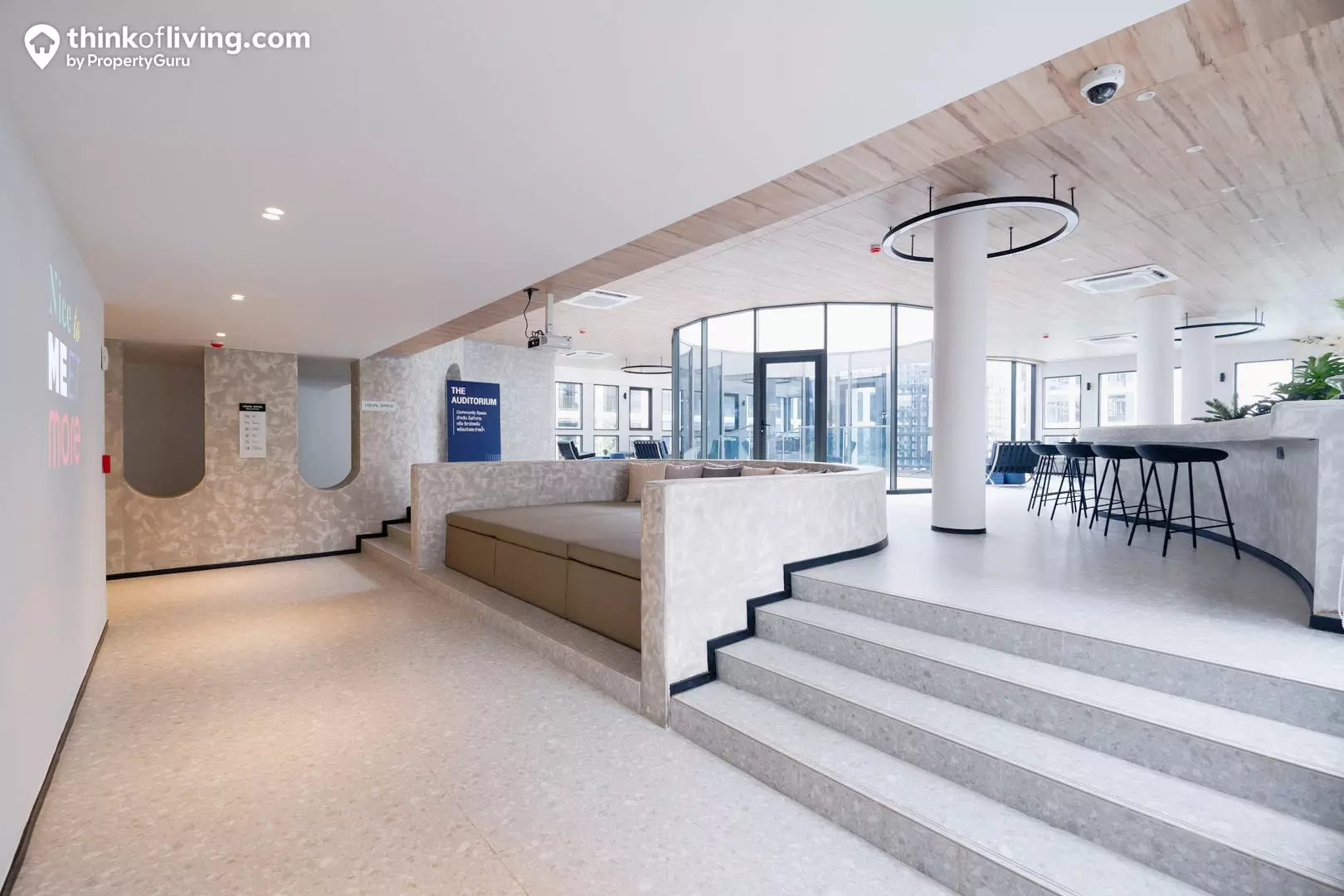 เป็น Highlight อีกจุดของโครงการนี้เลย เพราะจัดเต็มพื้นที่ส่วนกลางมามากถึง 5 ชั้น ซึ่งถือว่าให้มาเยอะเลยเมื่อเทียบกับบรรดาคอนโด Low Rise โดยพื้นที่ส่วนกลางจะเน้นเป็นพื้นที่ Co-Sharing Space หรือพื้นที่ Co-Working Space เพื่อรองรับการใช้งานของน้องๆนิสิตหรือคนในวัยทำงานนั่นเองค่ะ นอกจากนั้นยังน่าสนใจที่มีฟังก์ชัน Expression Lab เป็นห้องสตูดิโอสำหรับสร้างสรรค์ผลงานศิลปะ ทำให้น้องๆที่เรียนสายศิลปะหรือคนที่อยากวาดรูปเป็นงานอดิเรกก็มาใช้งานได้ค่ะ