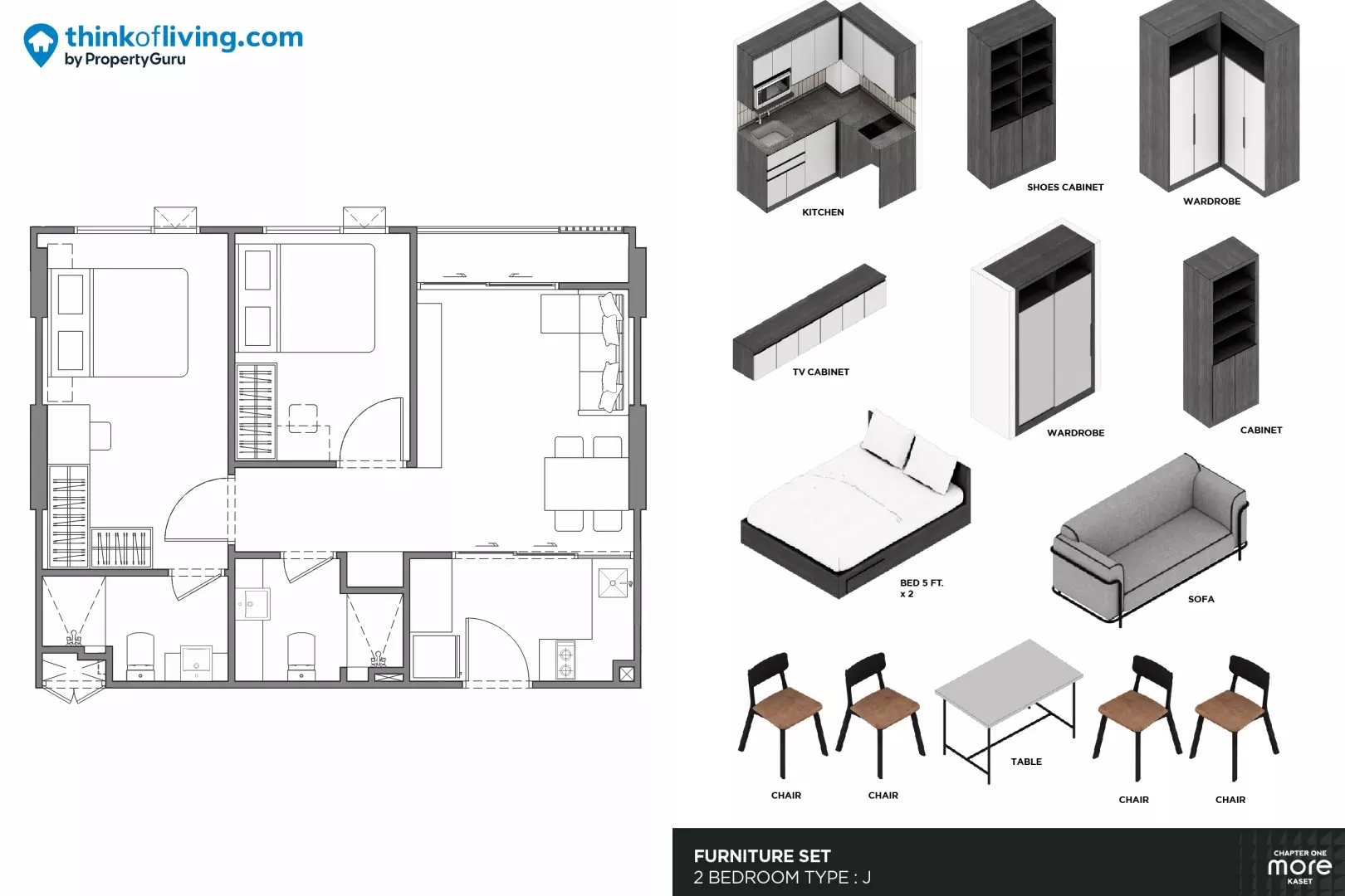 – ค่ากองทุนเริ่มต้น 16,450-17,450 บาท - 2 Bedroom พื้นที่ใช้สอย 53.60 ตร.ม. ราคาเริ่มต้น 5.49 ล้านบาท