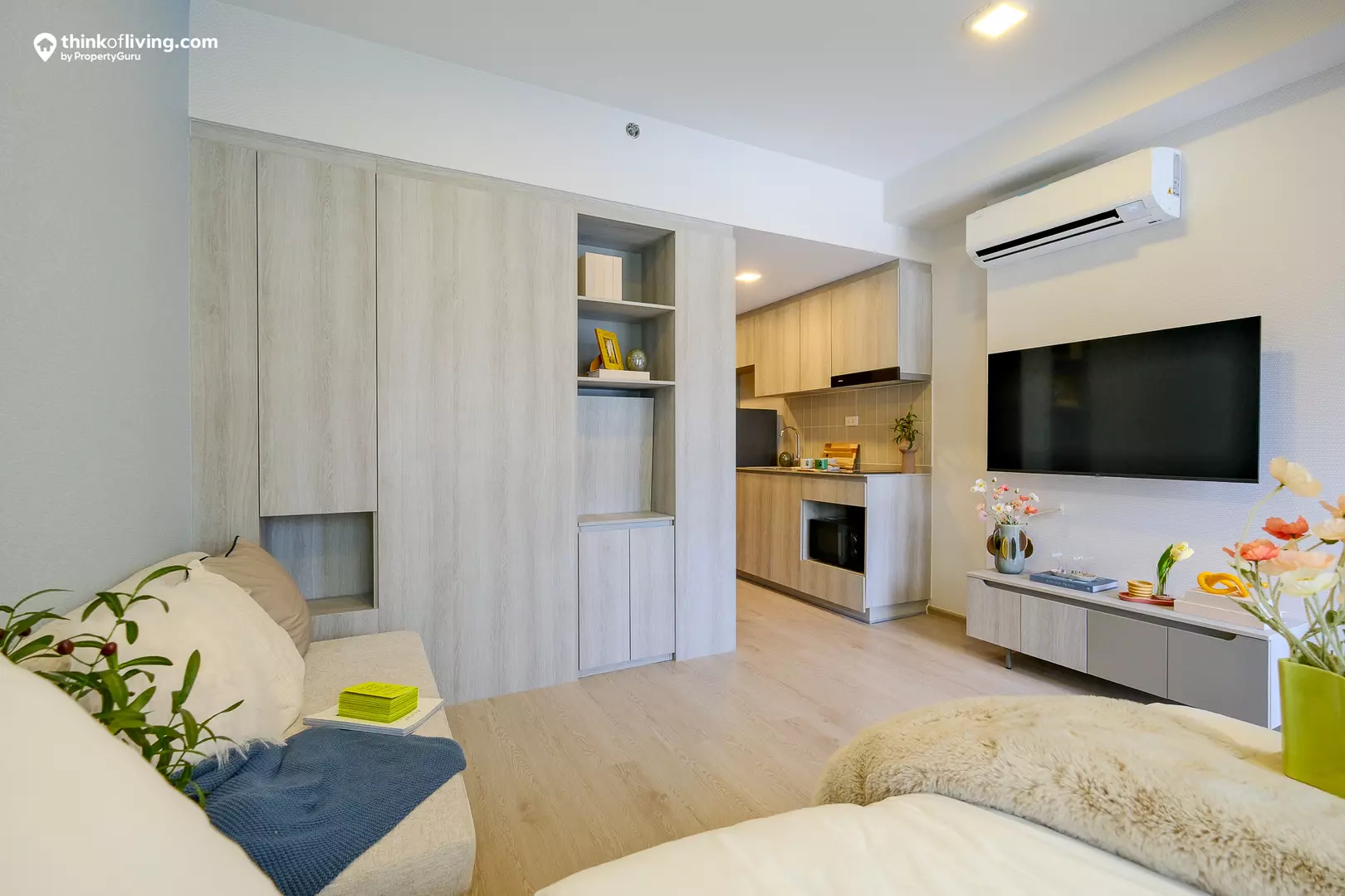 • Flexible Furniture : Fully Furnished ให้ครบพร้อมอยู่ การันตีทั้งเฟอร์ฯและห้องถึง 3 ปีเลยค่ะ ความน่าสนใจอยู่ที่เฟอร์ฯ Built – in ที่สามารถพับเก็บ ปรับเปลี่ยนการใช้งานได้ ทั้งยังมีพื้นที่เก็บของมาให้เยอะ ถูกใจชาวคอนโดแน่นอน