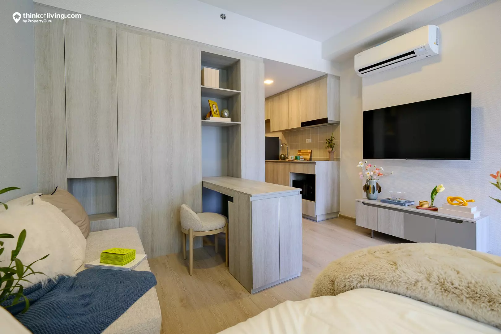 รูปแบบการขายเป็น Fully Furnished ตกแต่งพร้อมเข้าอยู่ ที่โดดเด่นเลยคือ เฟอร์นิเจอร์ที่ได้เป็นแบบ Flexible สามารถปรับเปลี่ยนการใช้งาน พับเก็บได้ ช่วยเพิ่มพื้นที่เก็บของได้เยอะ เหมาะกับชาวคอนโดที่ไม่อยาก Built – in หรือซื้อเฟอร์นิเจอร์เพิ่ม ซึ่งไม่ใช่ทุกโครงการที่จะให้เฟอร์ฯ ที่ตอบโจทย์ชาวคอนโดได้ขนาดนี้นะคะ