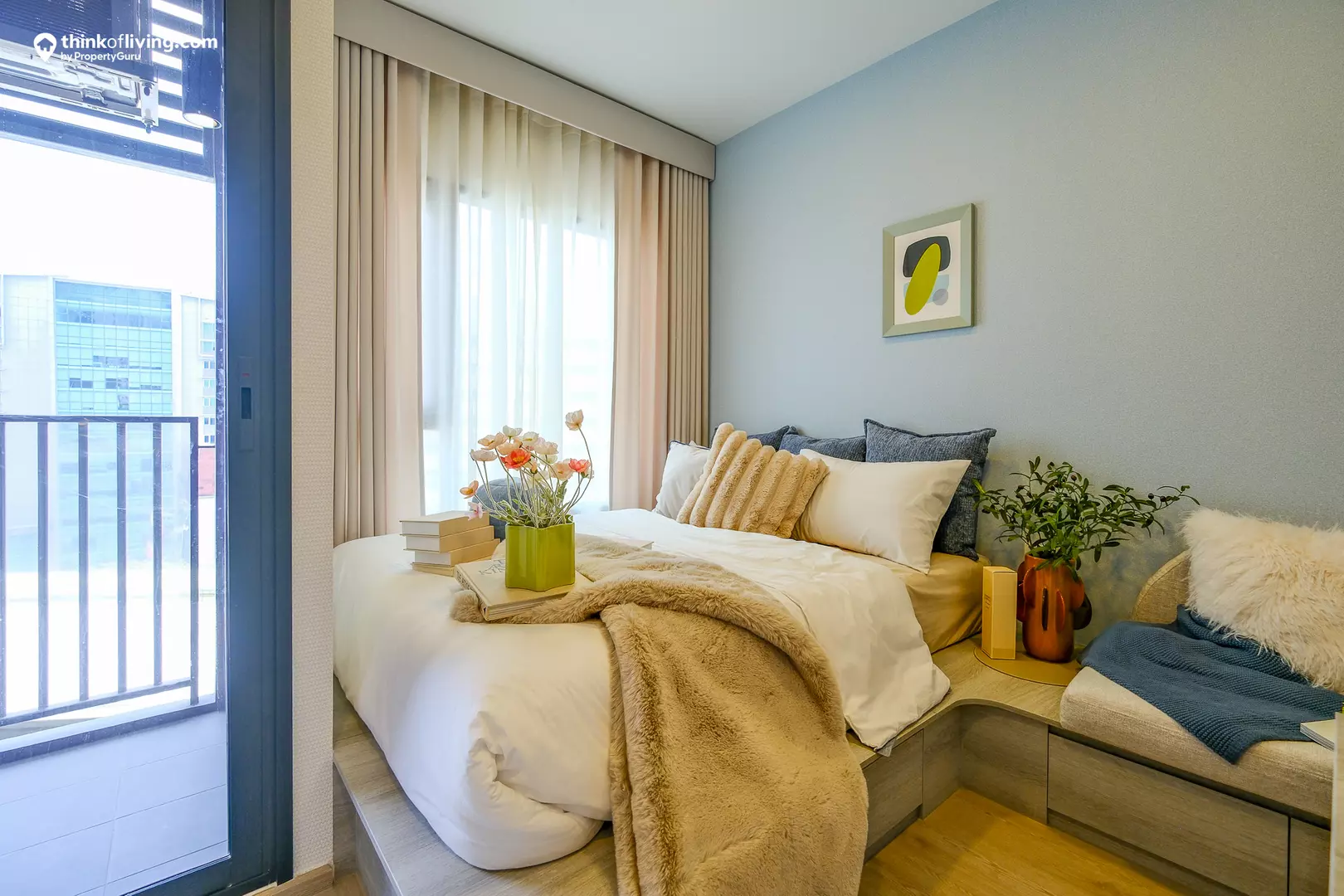 ห้องแต่ละแบบก็มีจุดเด่นแตกต่างกันชัดเจน อย่างห้อง Studio ก็มีการจัดพื้นที่ Walk – in Closet แยกมาให้เป็นสัดส่วน การ Built – in แต่ละจุดก็คำนึงถึงการใช้งานได้เหมาะสม มีพื้นที่เก็บของเยอะ หรืออย่างห้อง High Ceiling 1 Bedroom ก็มีห้องอเนกประสงค์ ปรับเปลี่ยนการใช้งานเองได้ เหมาะกับคนที่ชอบอยู่คอนโดแต่อยากได้ห้องที่มีพื้นที่ใช้สอยเยอะ จัดฟังก์ชันได้คุ้มค่า