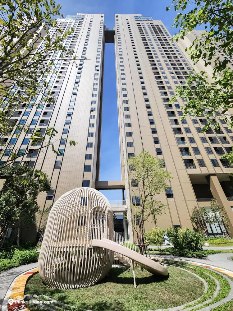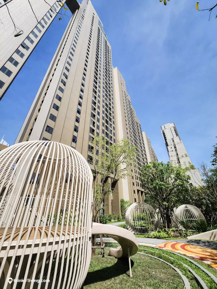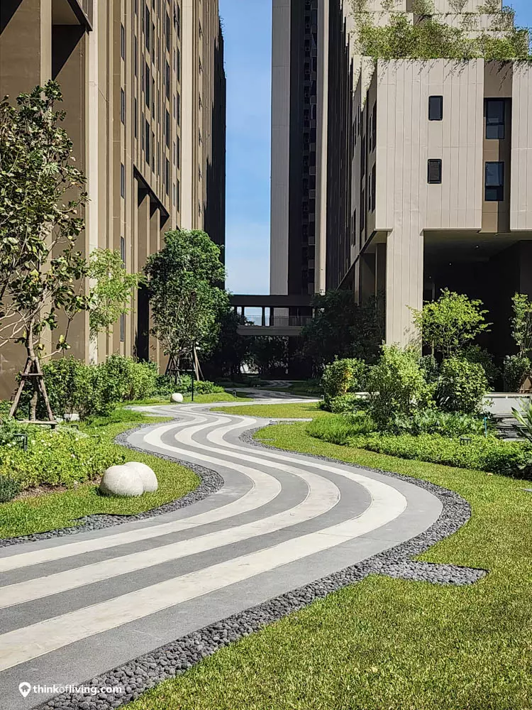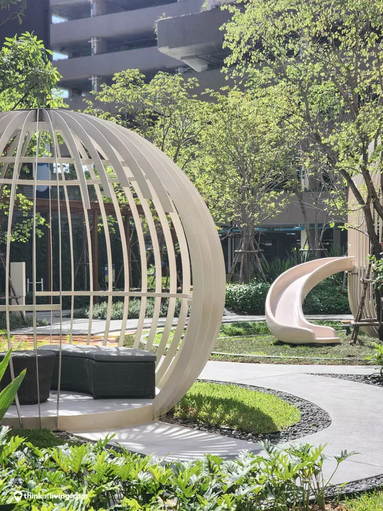 สวนที่นี่จะอยู่ตรงกลางจัดมาได้ร่มรื่น มีสนามเด็กเล่น ที่นั่งพักผ่อน Pet Park และยังมีJogging Track ไว้วิ่งได้ด้วย
