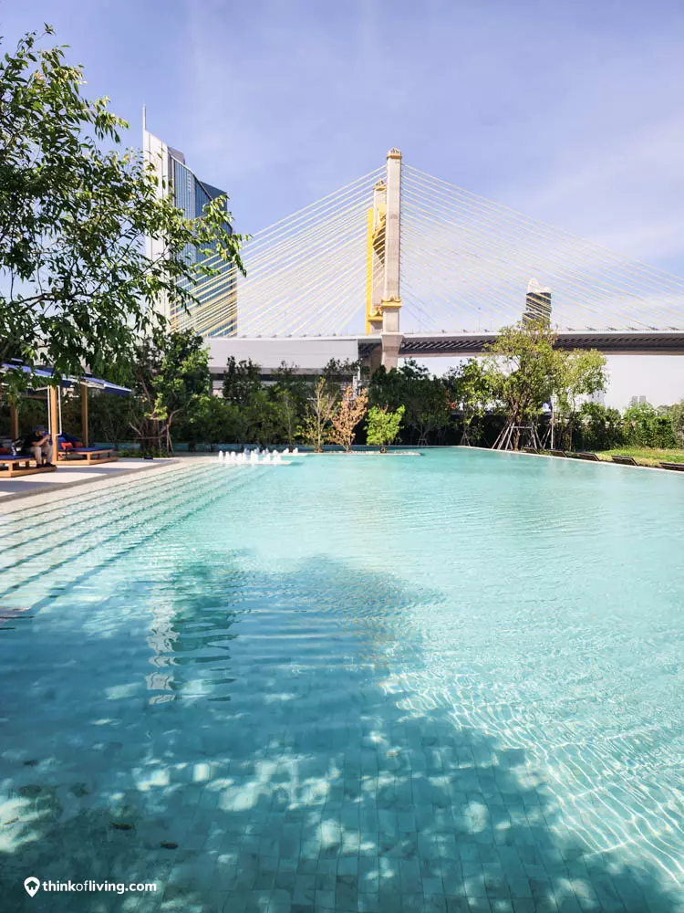ส่วนกลางของที่นี่ก็จะกระจายไปตามอาคารต่างๆ จัดมาน่าใช้งานมากๆครับ โดยเฉพาะสระว่ายน้ำ ที่มีขนาดใหญ่มาก อยู่ริมแม่น้ำเลย ว่ายน้ำไปชมวิวแม่น้ำไป คือดีย์