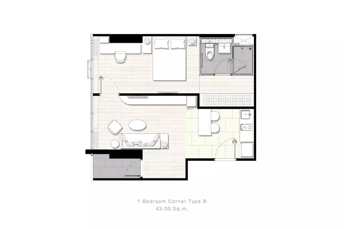 เจาะลึก 1 BEDROOM CORNER TYPE B พื้นที่ 43 ตร.ม. เริ่ม 6.29 ล้านบาท