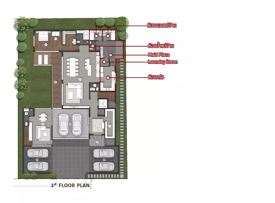 มองหาบ้านที่รองรับการต่อเติมในอนาคต รองรับที่จอดรถได้ถึง 10 คัน, มีพื้นที่สำหรับทำสระว่ายน้ำเพิ่มเติมได้ มีเทคโนโลยีต่างๆ ที่มาช่วยเรื่องความปลอดภัยและสุขภาพ เลือกใช้วัสดุในบ้านเป็นของแบรนด์ดัง มียี่ห้อระดับโลก