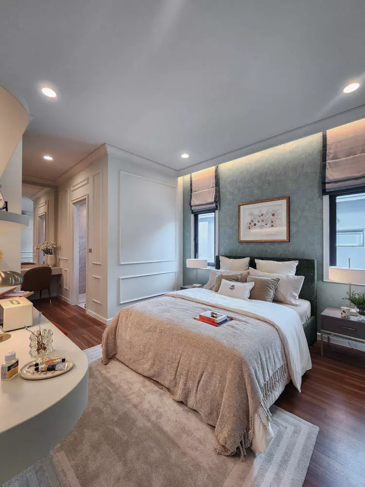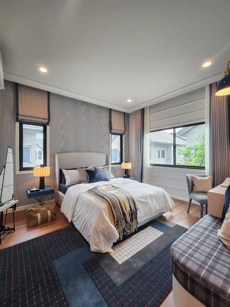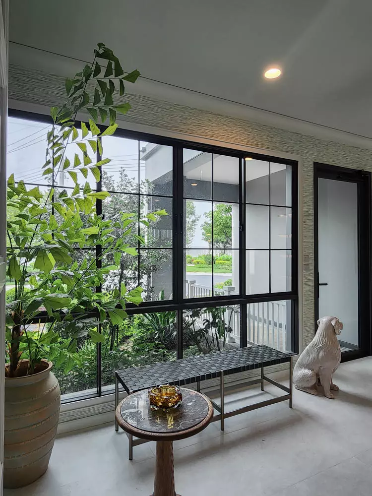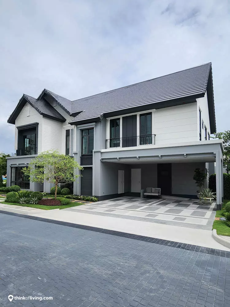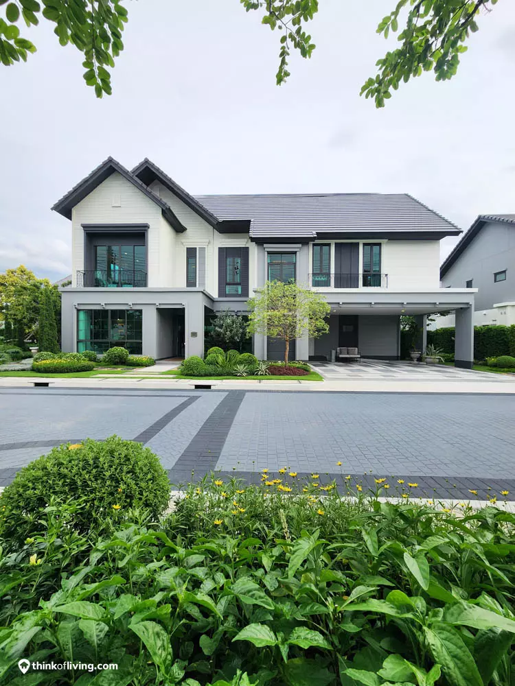 บ้านออกแบบมาให้ความรู้สึกอบอุ่น โดยตัวบ้านเน้นใช้เป็นโทนสีสว่าง เป็นบ้านหน้ากว้างทำให้บ้านดูใหญ่และหรูหรา และยังมี Courtyard หน้าบ้านที่สามารถปลูกต้นไม้ขนาดกลางเพิ่มความร่มรื่นให้กับตัวบ้านอีกด้วย