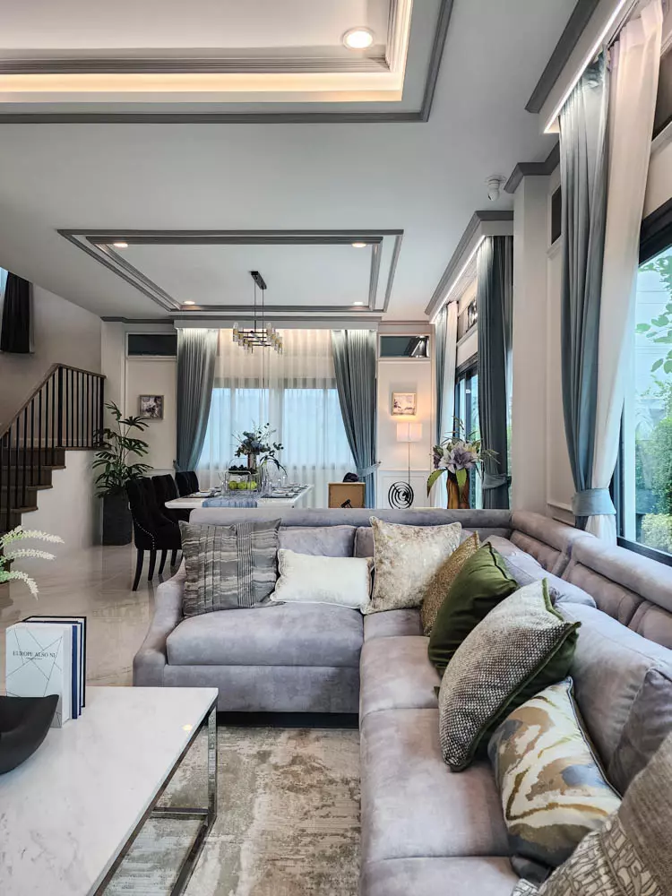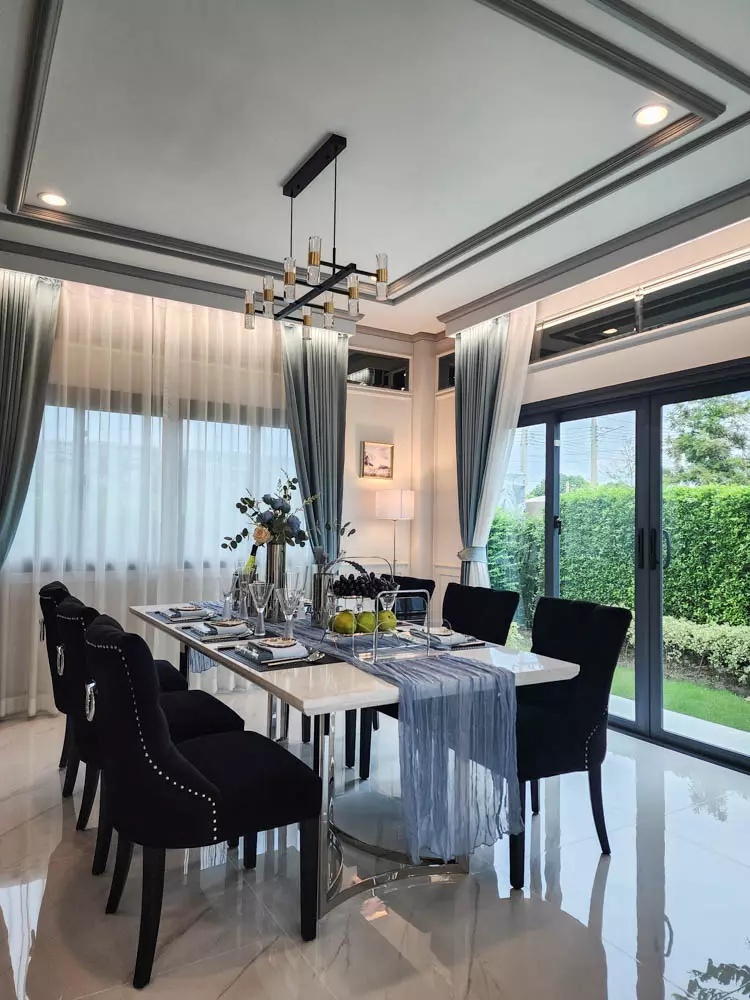 บ้านที่พามาชมนี้เป็นแบบ ศุภกานต์ ที่ดินเริ่มต้น 77.4 ตร.วา พื้นที่ใช้สอย 295 ตร.ม. จัดมาเป็น 4 ห้องนอน, 6 ห้องน้ำ, 1 ห้องแม่บ้าน, 3 ที่จอดรถ แบบนี้ราคาเริ่มต้น 9.75 ล้านบาท