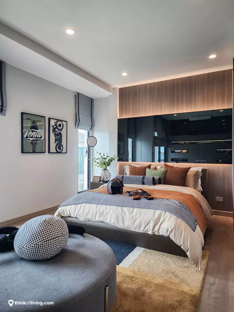 หลังนี้เป็นบ้านแฝด 3 ชั้น พื้นที่ใช้สอย 243 ตร.ม. พอๆกับบ้านเดี่ยวเลย จัดมา 4 ห้องนอน / 4 ห้องน้ำ / 3 ที่จอดรถ เป็นบ้านแฝดที่ให้อารมณ์บ้านเดี่ยวเลยนะ เพราะส่วนที่ติดกันส่วนใหญ่จะไม่ใช่โซนพักผ่อน ทำให้มีความเป็นส่วนตัว
