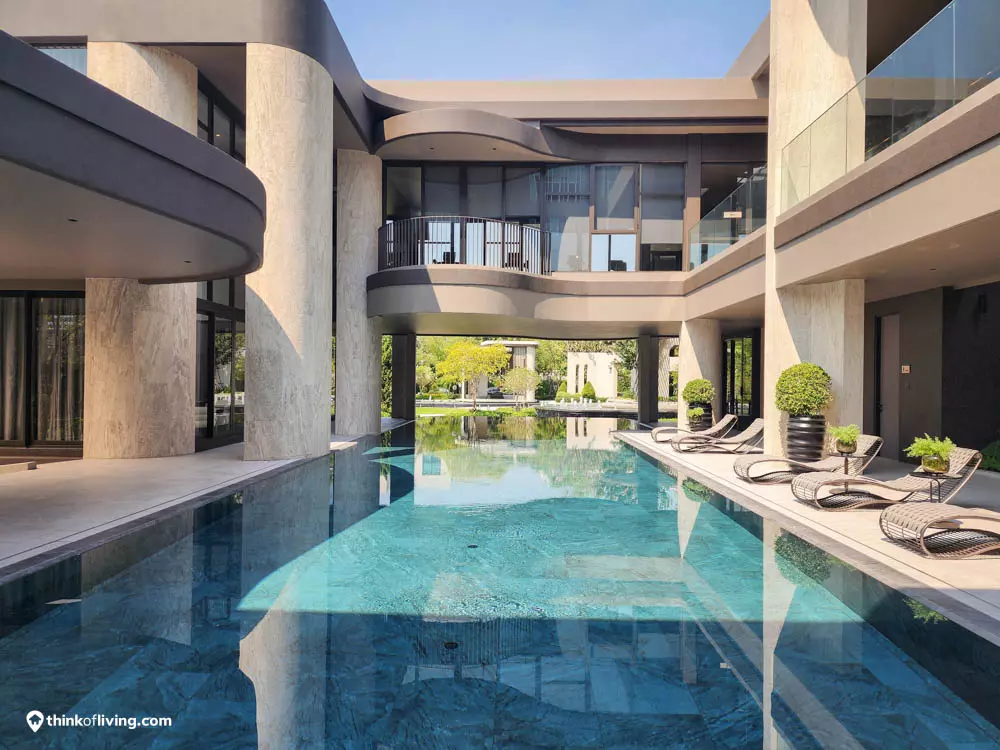 แบบบ้านซีรีส์ “Modern Arch Revival” ดีไซน์ร่วมสมัยผสมผสานระหว่างความ Modern และ Classic ได้อย่างลงตัว ออกแบบรูปทรงกล่อง ผสมเส้นโค้งและสีเอิร์ธโทนของวัสดุจากธรรมชาติ เหมาะกับคนรุ่นใหม่ที่ต้องการความหรูหรา มีเอกลักษณ์แต่ไม่ฉูดฉาด เหมาะกับครอบครัวขนาดใหญ่ รองรับได้ 4–6 ห้องนอน 3–5 ที่จอดรถ และมีแบบบ้านที่ได้ลิฟต์พร้อมสระว่ายน้ำส่วนตัว