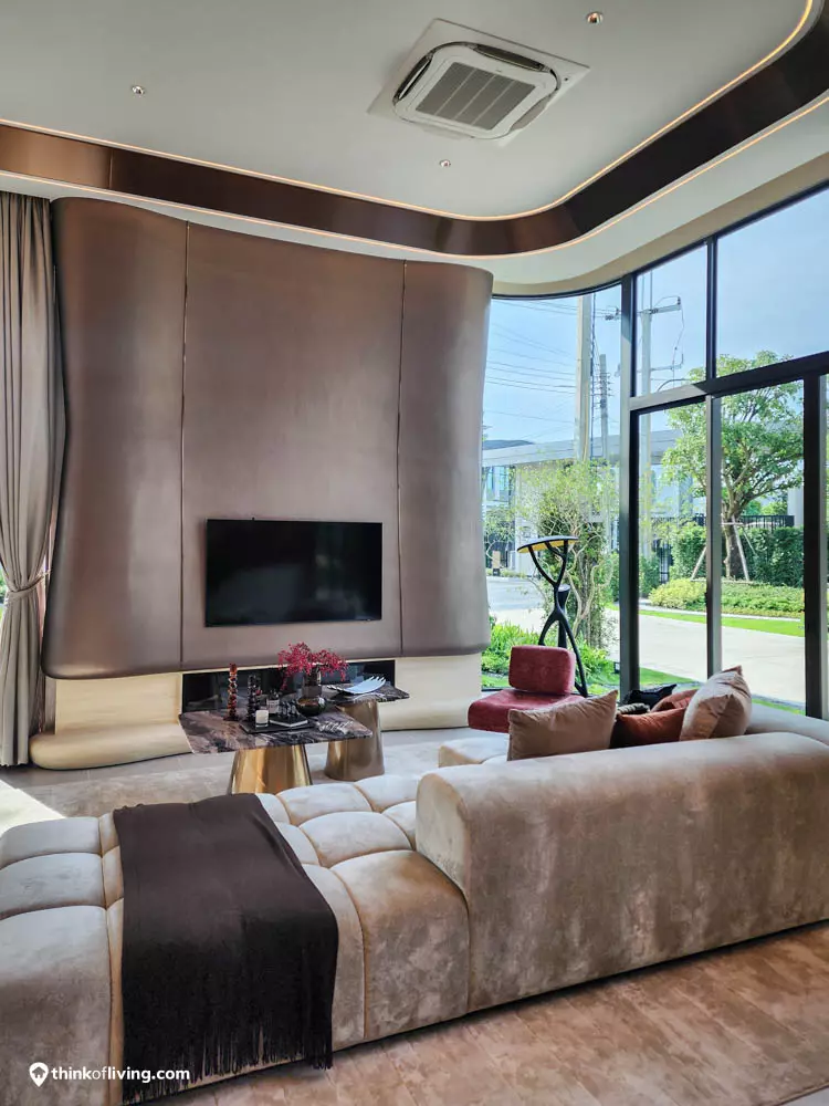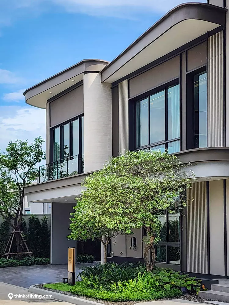 แอดมินชอบชื่อโครงการนะ บอกความเป็นตัวตนดี “กูธ์เธ่” แค่ชื่อก็เท่แล้ว มาดูบ้านกัน เป็นบ้านที่ออกแบบมา Modern ผสมกับความโค้งเว้า ใช้โทนสีออกแนวน้ำตาลผสมสีขาว เป็นหลักก็ดูเป็นธรรมชาติ