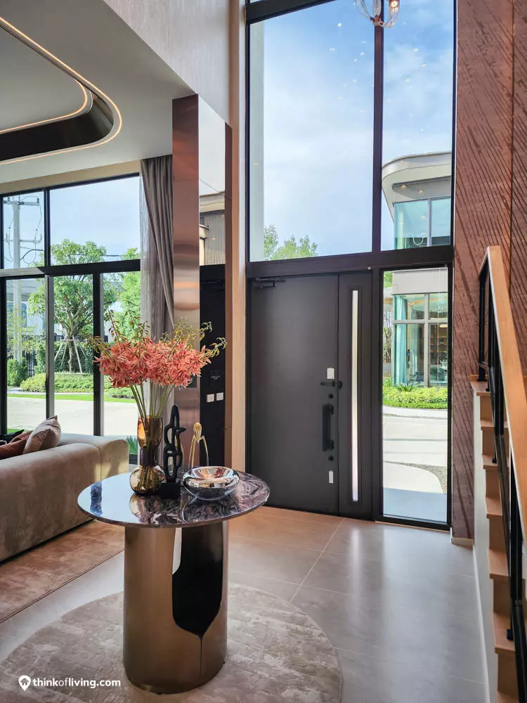 หลังนี้เป็นบ้านแบบ Xenith เป็นแบบใหญ่สุด พื้นที่ใช้สอย 461 ตร.ม. จัดมาเป็น 4 ห้องนอน 5 ห้องน้ำ 4 ที่จอดรถ 2 ห้องอเนกประสงค์ แบบนี้ราคาเริ่มต้น 28.66 ล้านบาท