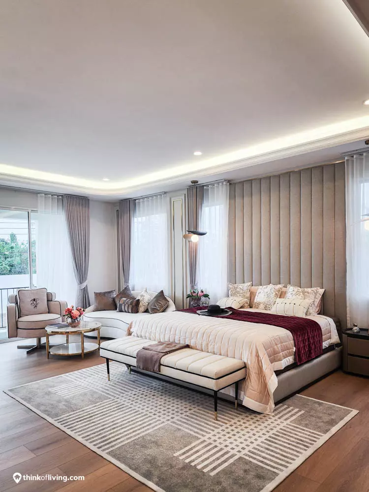 ชั้นบนมี 3 ห้องนอน มีห้องน้ำในตัวทุกห้อง ห้อง Master Bedroom ของที่นี่จัดมาใหญ่แบบใหญ่มากๆ จริงๆวางเตียง 10 ฟุตได้เลยนะ 555 มีมุมที่ทำเป็น Walk in closet ขนาดใหญ่ ที่อยู่หน้าห้องน้ำ แบบไม่มีประตู ให้บรรยากาศแบบรีสอร์ท วาบหวิวแบบเบาๆ ให้ห้องน้ำมีอ่างอาบน้ำมาให้ และยังมีส่วนที่อาบน้ำแบบ Outdoor แบบน่ารักๆ มาให้ทุกแบบบ้านด้วยนะครับ