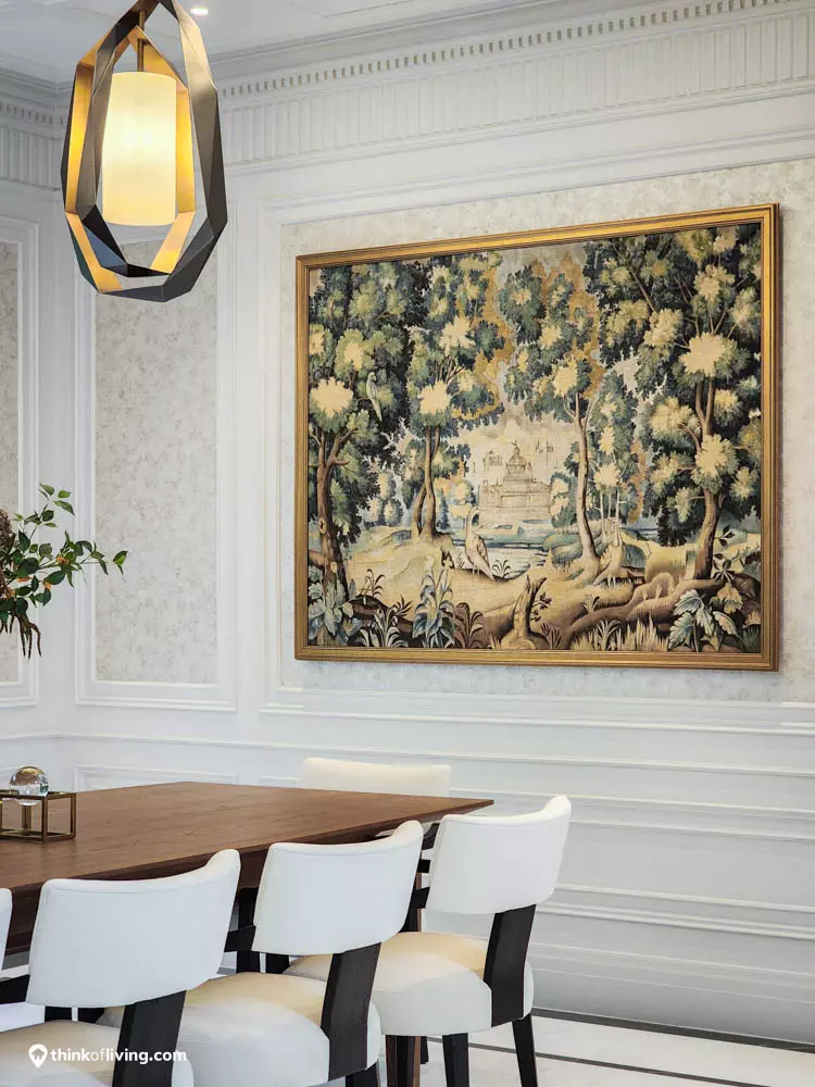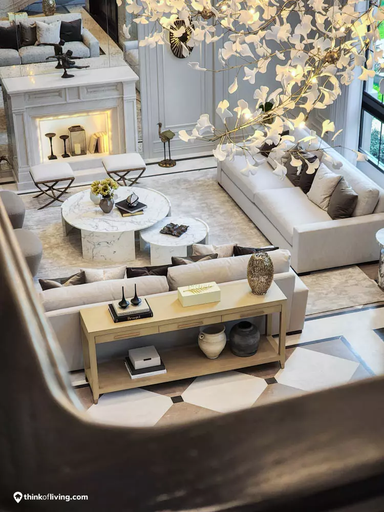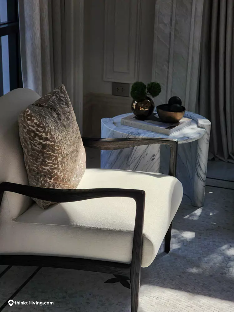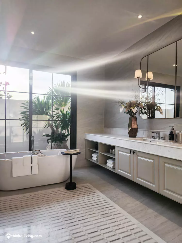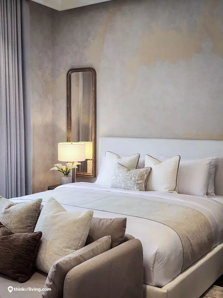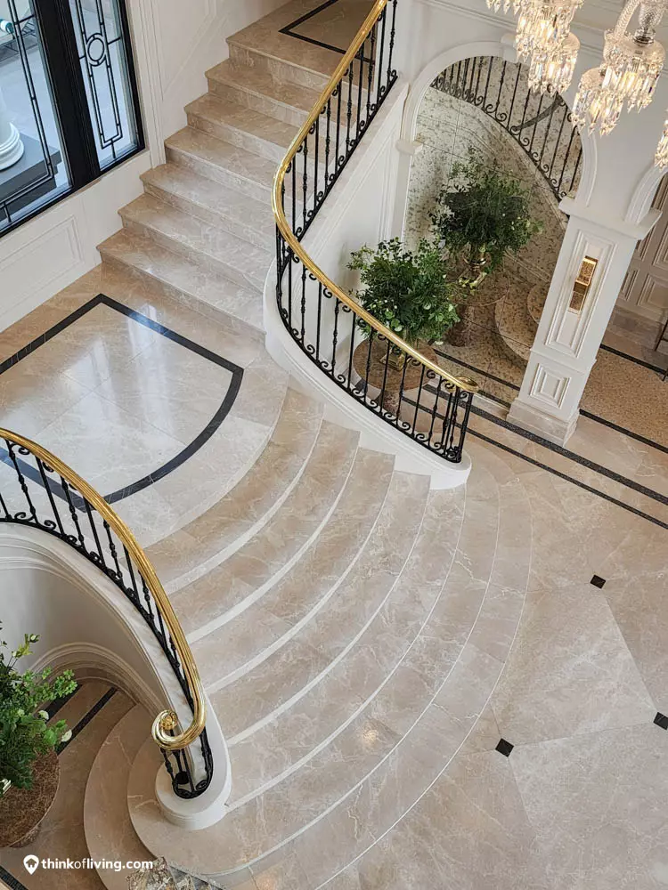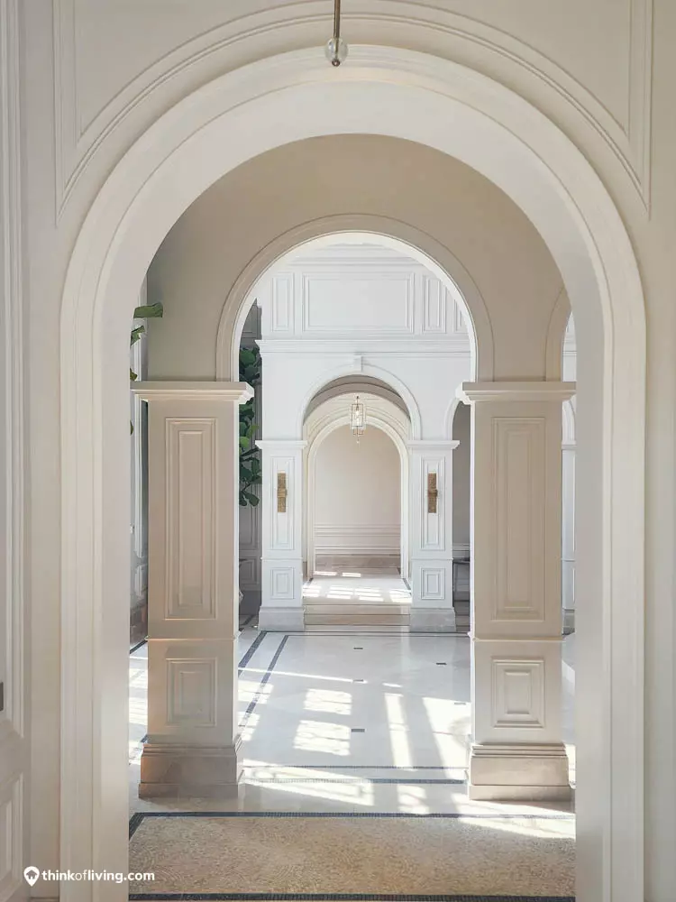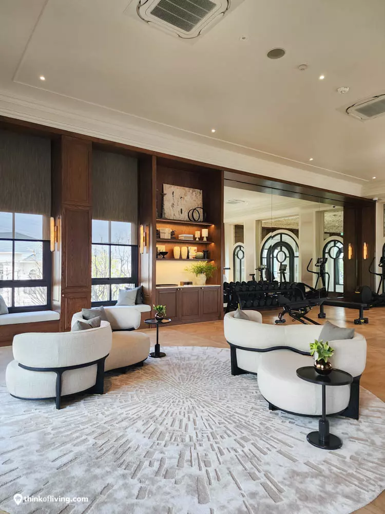 ตัวบ้านได้แรงบันดาลใจจากสไตล์ Regency ในช่วงต้นศตวรรษที่ 19 เน้นความหรูหรา คลาสสิกแบบพระราชวังบักกิงแฮม โดดเด่นด้วยความสมมาตร สัดส่วนขนาดใหญ่ และรายละเอียดอย่างซุ้มโค้ง ลูกฟัก เสากลม และบัวหัวเสา พร้อมสี Earth Tone นุ่มนวล ช่วยให้อาคารที่ดูหนักแน่น มีความละมุนนุ่มนวลยิ่งขึ้น