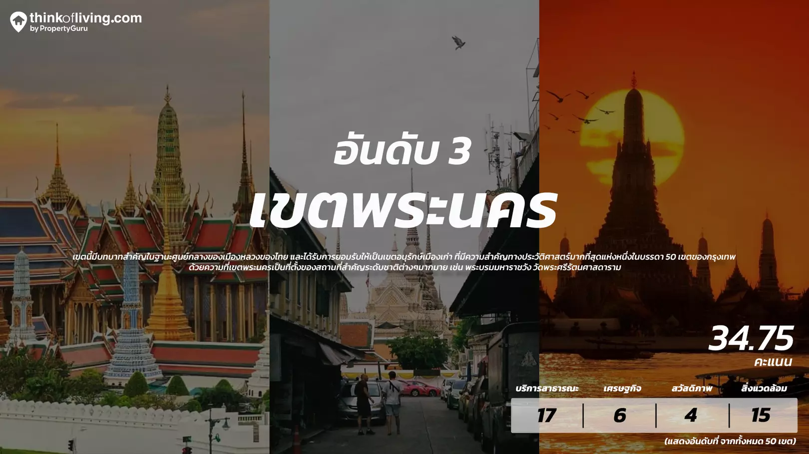 โดยในบรรดาเกณฑ์การให้คะแนน 4 หัวข้อ สิ่งที่เขตพระนครทำได้ดีที่สุดจะเป็นเรื่อง ‘สวัสดิภาพ อันดับ 4’ และ ‘เศรษฐกิจ อันดับ 6’ จากทั้งหมด 50 อันดับ อาจเพราะด้วยความที่เป็นพื้นที่ใกล้เขตวังหรือเขตพระราชฐาน จึงยิ่งมีการดูแลเข้มงวดเป็นพิเศษ (ถ้าปัญหาจะมีเรื่องคนไร้บ้านที่เจอได้บ่อยสุด) รวมถึงยังมีสถานที่ที่สามารถดึงดูดผู้คนทั่วโลกให้มาเที่ยวไทยได้ด้วย ไม่ว่าจะเป็นวัดวาอาราม พระราชวัง และขาดไม่ได้เลยคือ ถนนข้าวสาร ที่เป็นแหล่งบันเทิงยามค่ำคืนขั้นสุดแห่งหนึ่งของสยามแลนด์