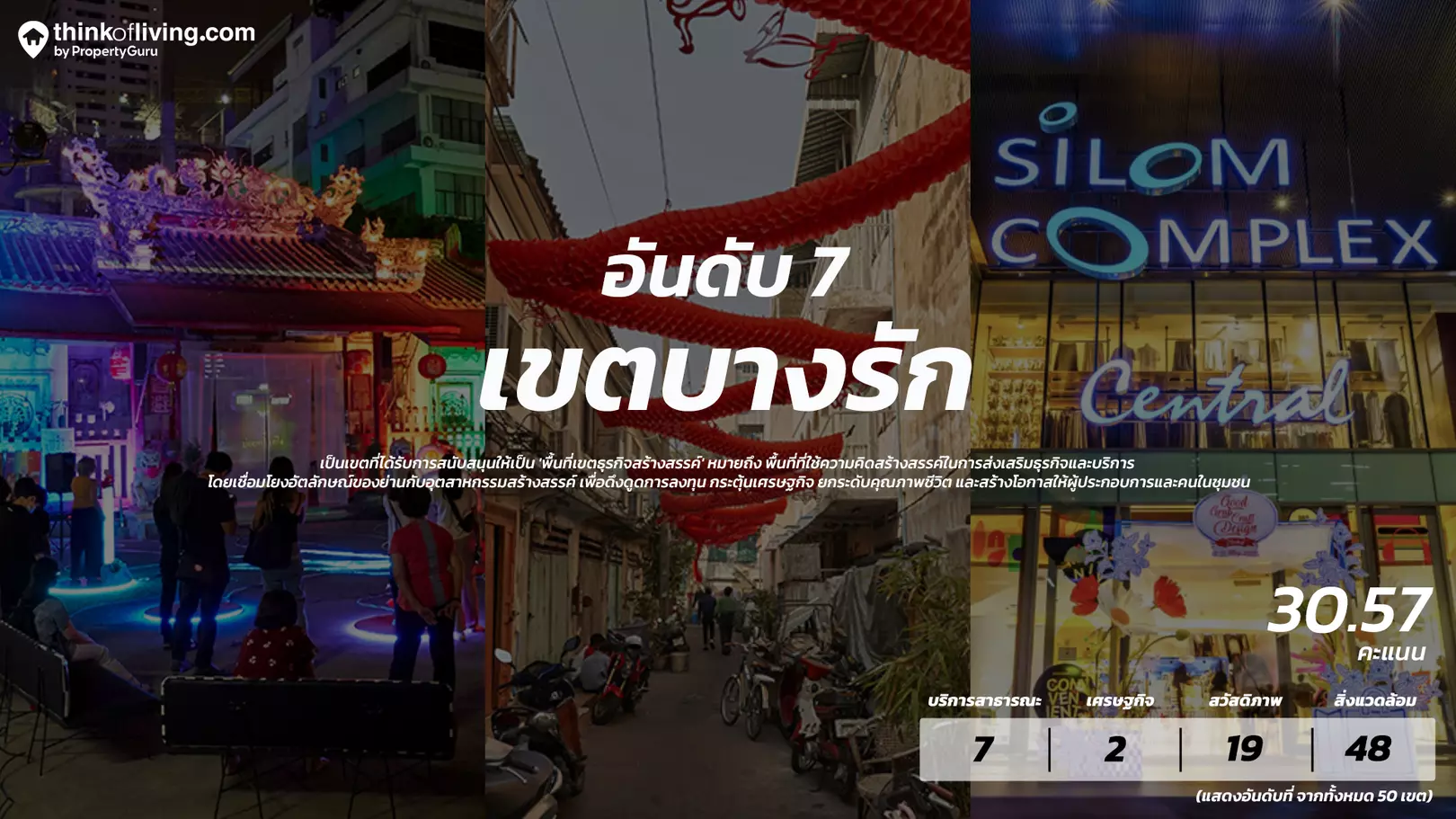เป็นอีกหนึ่งเขตที่มีลักษณะผังเมืองเป็นสีแดงทั้งหมด ทำให้มีศักยภาพในการพัฒนาที่ดินได้สูง และเมื่อเร็วๆนี้ เขตบางรักเพิ่งจะมี Mega Project สร้างเสร็จใหม่คือ Dusit Central Park เป็นโปรเจค Mixed-Use ที่มีทั้งห้างสรรพสินค้า โรงแรม และคอนโดมิเนียม ซึ่งได้ถูกพัฒนามาจากโรงแรมดุสิตธานีเดิม ปัจจุบันเรียกได้ว่าเป็น Magnet ที่ช่วยเพิ่ม Value ให้กับย่านนี้เป็นอย่างมาก (ต่อจากตึก King Power Mahanakhon รุ่นพี่) ทำให้ราคาประเมินของที่ดินย่านนี้พุ่งสูงขึ้นไปติดอันดับ Top 3 ของประเทศอย่างไม่ต้องสงสัย