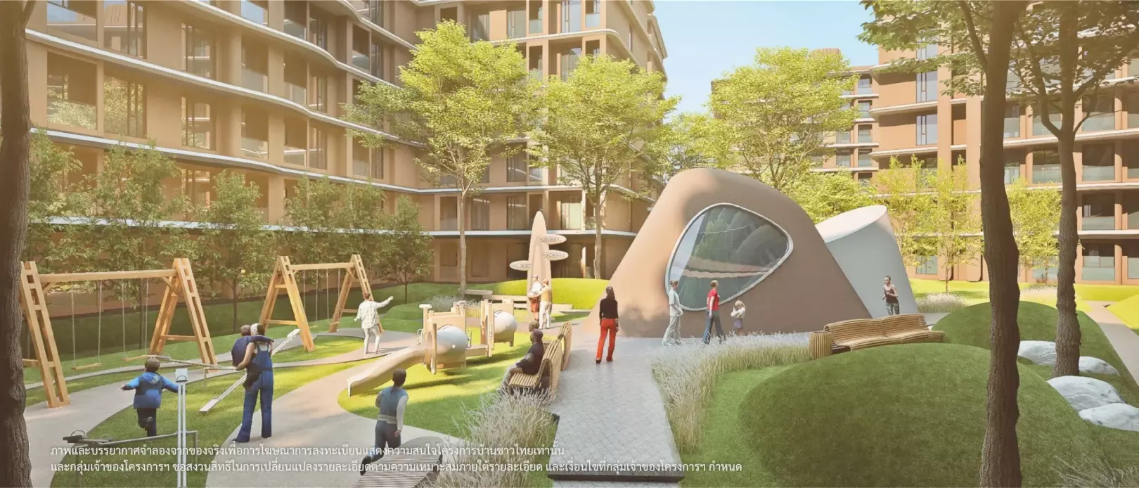 ขอบอกก่อนว่าโครงการนี้ไม่ใช่บ้านเพื่อคนไทยที่เคยมีกระแสไปก่อนหน้านี้นะคะ เพราะ Project “บ้านชาวไทย” เป็นของกลุ่ม BTS ที่นำที่ดินมาพัฒนาเป็นที่อยู่อาศัย ซึ่งมีโครงการแรกเป็น D:CODE SRI NAKARIN