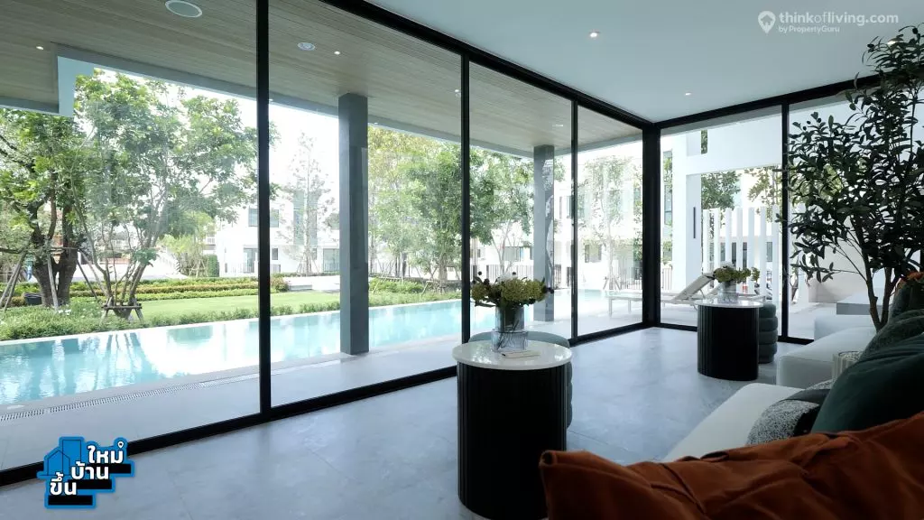 ส่วนกลางมีอาคารคลับเฮาส์ ที่มีสระว่ายน้ำยาวประมาณ 15 เมตร แยกสระเด็กไว้ให้ รับวิวสวนที่อยู่ติดๆกัน ด้านในอาคารก็จะมี Lobby Lounge ห้อง Co-Working Space ที่ชั้น 2 และห้อง Fitness