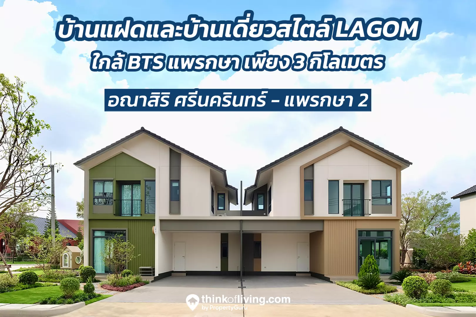 วันนี้เราจะพาไปชมโครงการ อณาสิริ ศรีนครินทร์ – แพรกษา 2 บ้านแฝดและบ้านเดี่ยวโครงการใหม่ จาก Sansiri ในราคาเริ่มต้น 4.99 ล้านบาท* ซึ่งหน้าตาของโปรดักส์ตัวนี้ก็ถือว่าโดดเด่น ไม่เหมือนใครในย่านเลยครับ ด้วยสไตล์ที่มีสถาปัตยกรรมแบบ LAGOM ได้แรงบันดาลใจมาจากบ้านในสวีเดนของชาวสแกนดิเนเวีย ก่อนจะเข้าไปชมบรรยากาศ เราได้นำ Highlights ของโครงการที่น่าสนใจ มาสรุปให้ชมกันก่อนดังนี้