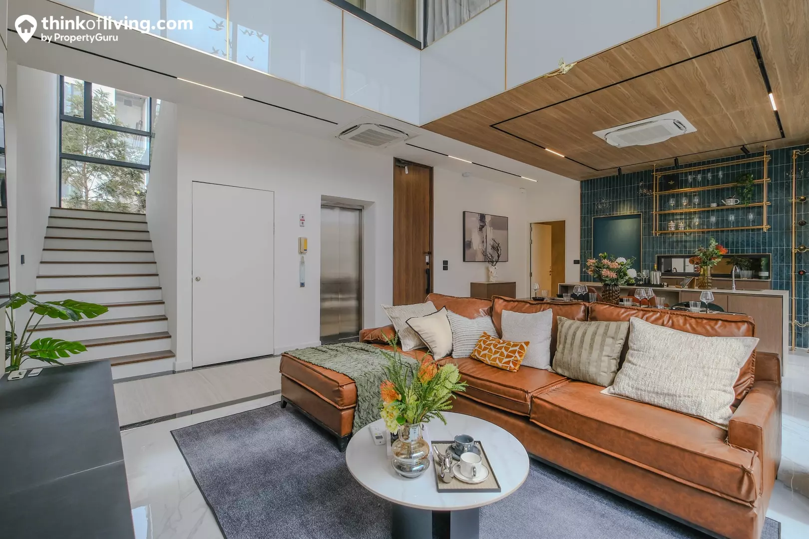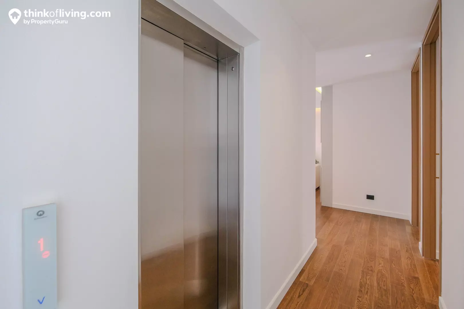 ติดกับประตูทางเข้าเป็นลิฟต์โดยสารและโถงบันไดขึ้นชั้น 2 โดยลิฟต์ใช้ของยี่ห้อ Jardine Schindler จุได้ 5 คน รองรับน้ำหนัก 400 กิโลกรัม การทำงานค่อนข้างเงียบ จึงไม่ต้องกังวลเรื่องเสียงรบกวน สำหรับความสูงฝ้าเพดานปกติได้มาประมาณ 3.2 เมตร มีแอร์แบบ Cassetted Type 4 ทิศทาง ติดตั้งมาให้ ตำแหน่งเหมือนในบ้านตัวอย่าง
