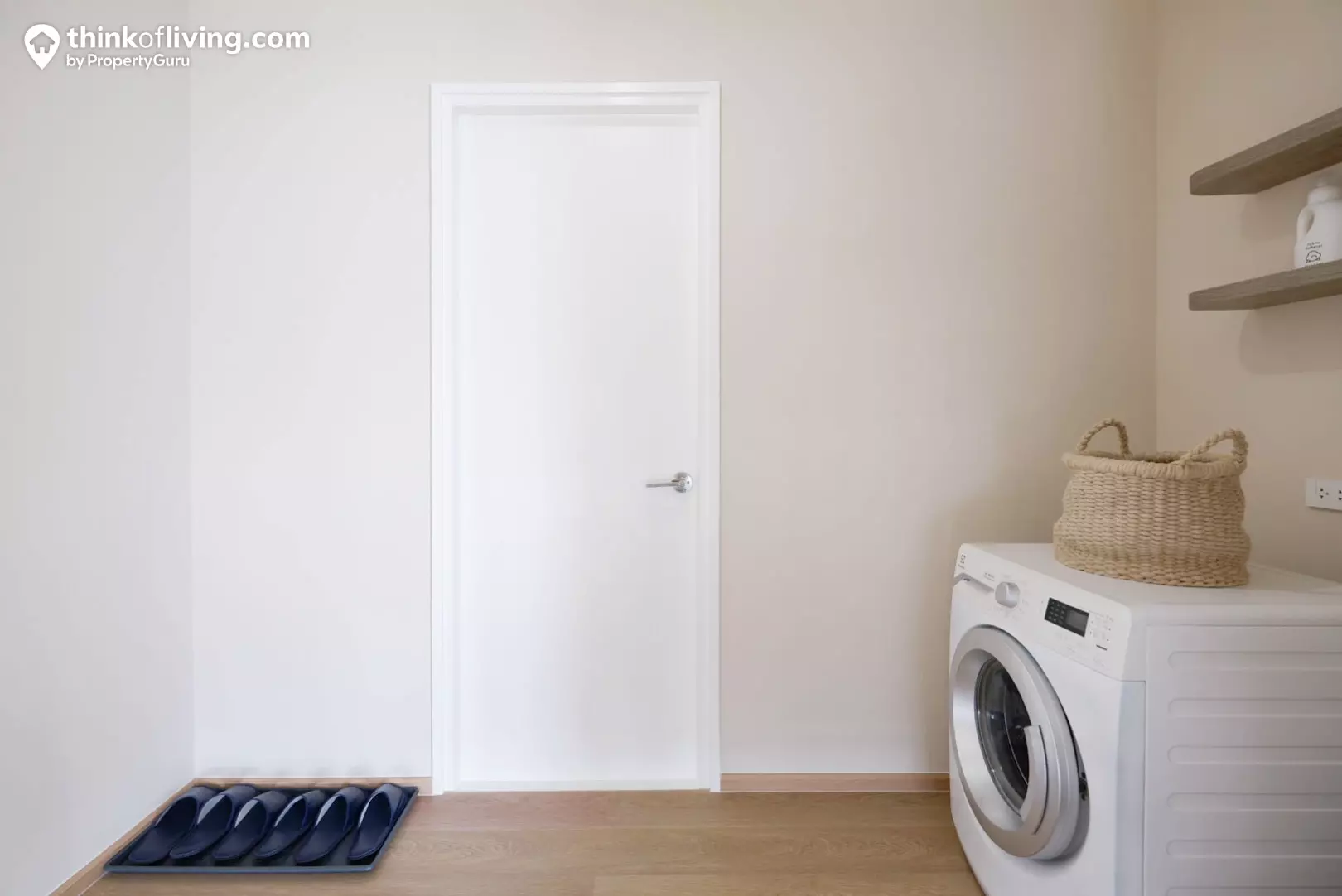 สำหรับโถงชั้น 4 จะมีขนาดประมาณ 2.70×3.00 เมตร มากกว่าพื้นที่โถงในชั้นอื่นๆ จึงมีเว้นพื้นที่กว้างประมาณ 0.90×1.50 เมตร ให้สามารถ Built-in หรือใช้งานได้ อย่างบ้านตัวอย่างก็ใช้เป็นพื้นที่ตั้งเครื่องซักผ้า แต่จริงๆแล้วทางโครงการมีเตรียมระบบท่อน้ำสำหรับเครื่องซักผ้าอยู่ตรง Rooftop Balcony อยู่แล้วนะคะ เราจึงมองว่าพื้นที่นี้เหมาะทำ Built-in เป็นตู้เก็บอุปกรณ์ซักผ้า-รีดผ้ามากกว่าค่ะ