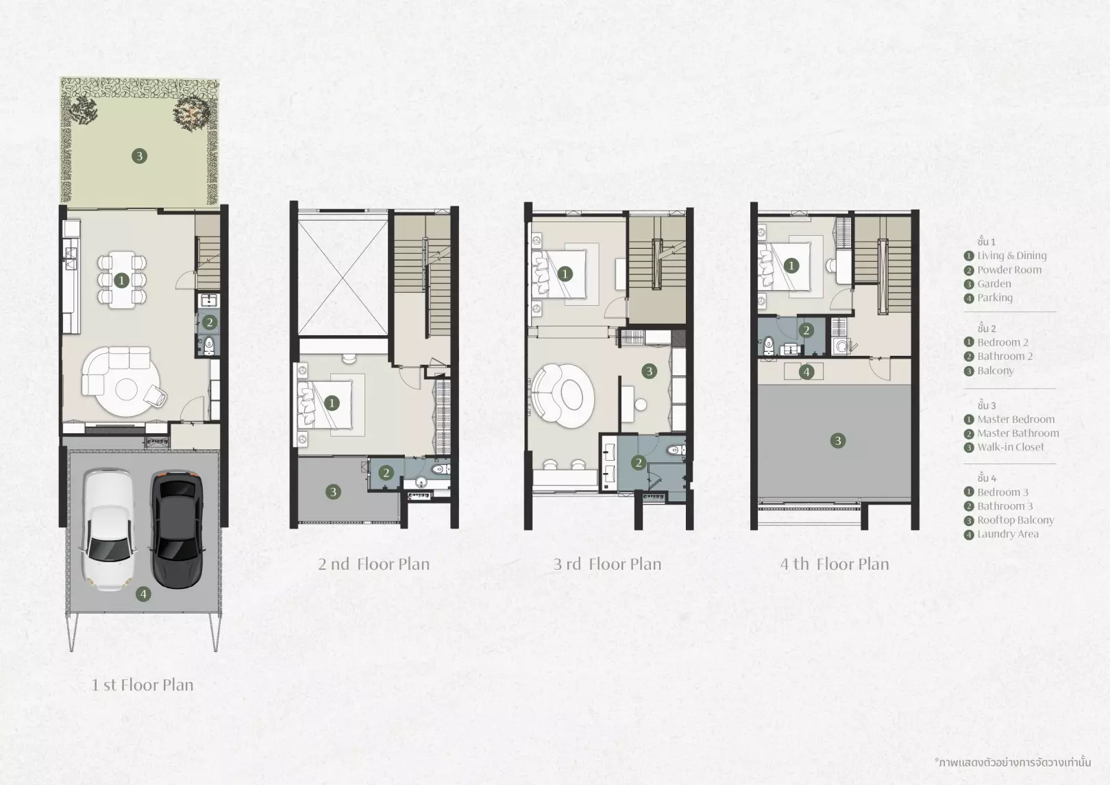 – ฟังก์ชัน 3 ห้องนอน / 4 ห้องน้ำ / 2 ที่จอดรถ / Rooftop Balcony / Double Volume 5.95 เมตร