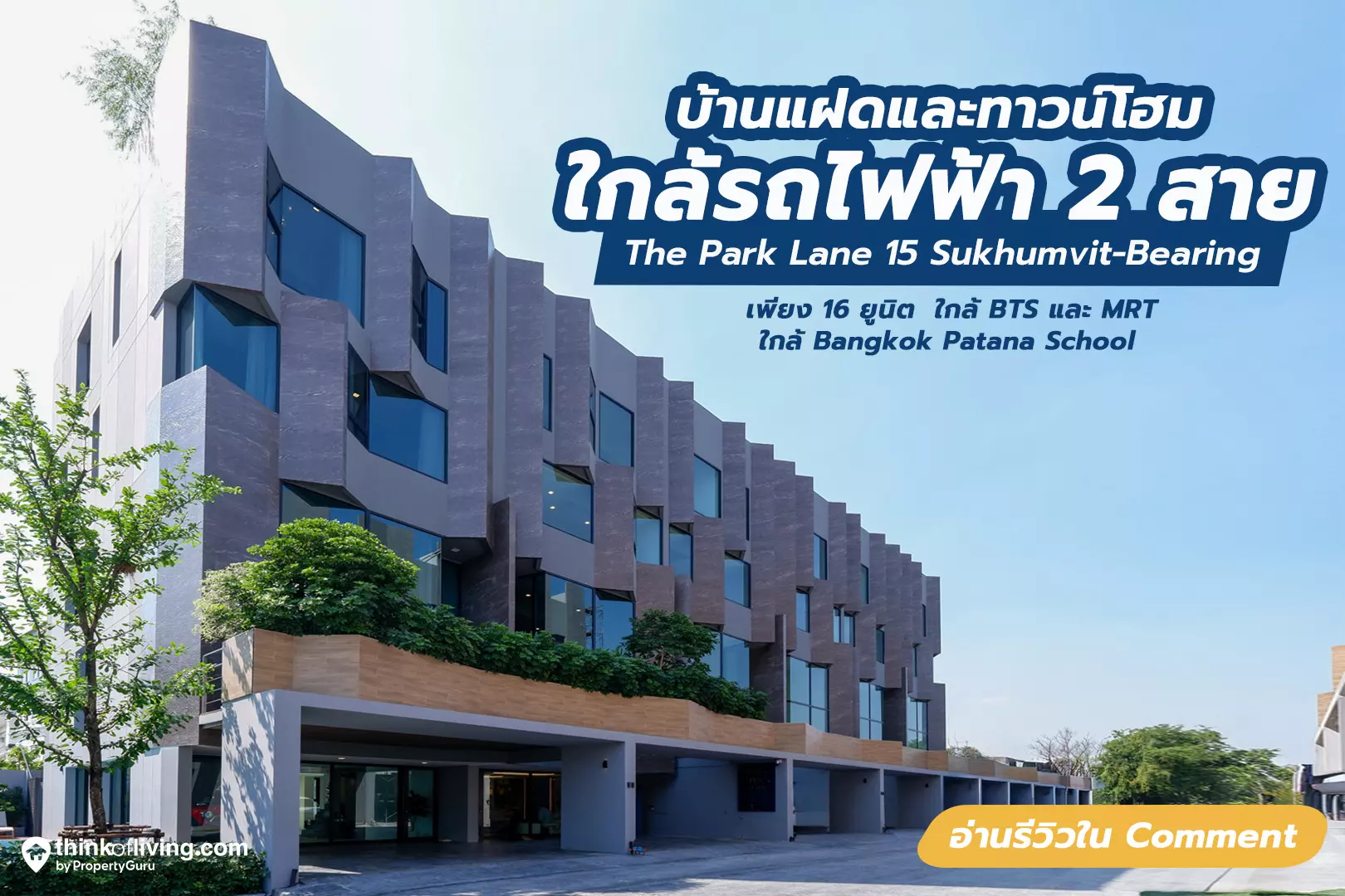 เปิดตัวโครงการ The Park Lane 15 Sukhumvit – Bearing (เดอะ พาร์คเลน 15 สุขุมวิท – แบริ่ง) บ้านแฝดและทาวน์โฮม ทำเลใกล้ BTS แบริ่งและ MRT ศรีแบริ่ง แล้วยังไม่ไกลจากโรงเรียนนานาชาติชื่อดังหลายแห่ง ผู้ปกครองไปรับ-ส่งลูกหลานได้สบายๆ สำหรับ Highlights ที่น่าสนใจจะมีอะไรบ้าง ไปชมกันเลย