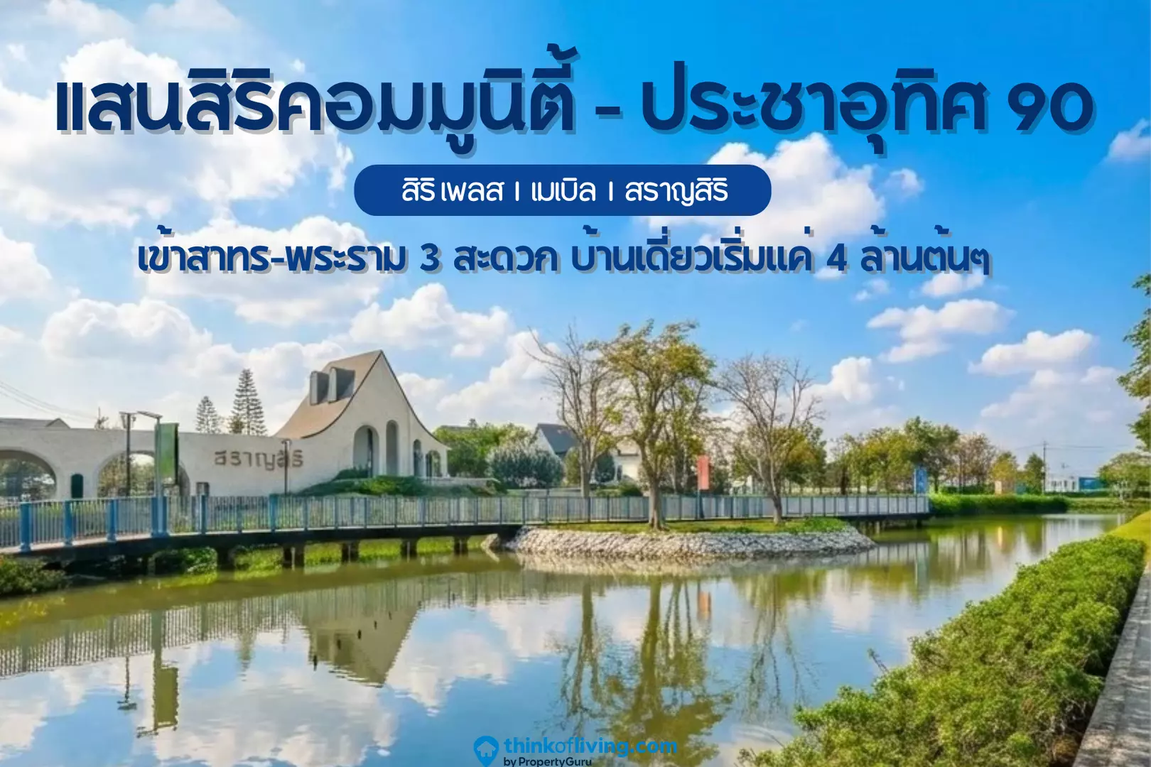 Siri Place Prachauthit 90 (สิริ เพลส ประชาอุทิศ 90) : ทาวน์โฮม 2 ล้านที่ได้บรรยากาศผืนน้ำหน้าคอยต้อนรับอยู่หน้าโครงการ ราคาผ่อนใกล้เคียงกับค่าเช่าบ้าน แต่ได้ที่ดินและทรัพย์สินเป็นของตัวเอง รองรับการขยับขยายสร้างครอบครัวในอนาคต