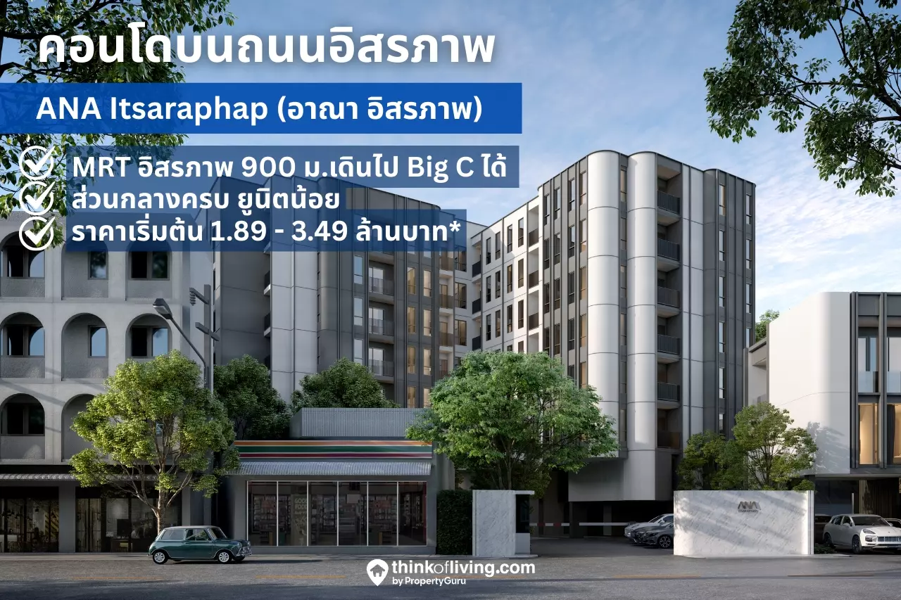 โครงการ ANA Itsaraphap (อาณา อิสรภาพ) ถือว่าเป็นโครงการที่น่าสนใจสำหรับคนที่มองหาคอนโดบบนถนนอิสรภาพ ที่ชอบความคึกคัก อุดมสมบูรณ์ หาของกินง่าย เดินไปห้างได้ เดินทางสะดวก เหมาะกับทั้งอยู่เอง และมีศักยภาพในการปล่อยเช่านักศึกษา หรือบุคลากรที่ทำงานในย่านนี้ได้ ต้องการพื้นที่ส่วนกลางครบ ชอบโครงการสวย และราคาเข้าถึงง่าย มีงบแต่งห้องแยกต่างหาก ห้องราคาเริ่มต้น 1.89- 3.25 ล้านบาท หรือมีกำลังผ่อนเริ่มต้นประมาณ 9,000-20,000 บาท/เดือน