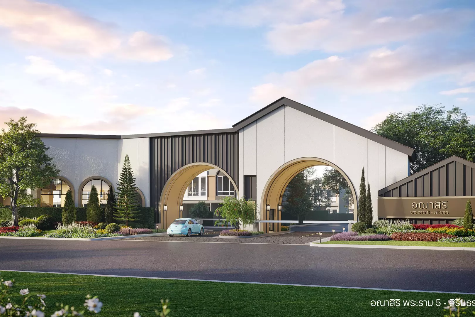 แบบบ้านภายในโครงการ มีให้เลือกทั้ง ทาวน์โฮม บ้านแฝด และบ้านเดี่ยว รวมถึง 7 แบบ ตอบโจทย์ครอบครัวขนาดเล็กไปจนครอบครัวขนาดใหญ่เลยครับ ออกแบบบ้านเป็นสไตล์ Barn House ให้ความรู้สึกอบอุ่นด้วยวัสดุโทนสีธรรมชาติ พร้อม Double Volume ส่วนโถงบันไดที่ออกแบบให้เพดานสูงพิเศษถึง 5.9 เมตร มีดีเทลโค้ง (Arch) ที่ช่วยให้บ้านดูซอฟต์และมีสไตล์มากขึ้น ภายในเน้นการออกแบบภายในแบบ Open Plan ที่เชื่อมโยงพื้นที่นั่งเล่น ส่วนรับแขก และมุมทานอาหารเข้าด้วยกันเป็นพื้นที่ใหญ่พื้นที่เดียว เพื่อให้ทุกคนในบ้านได้ใช้ชีวิตร่วมกัน พร้อมมุมพิเศษ Stair Nook พื้นที่ใต้บันไดเพดานสูง ที่คุณสามารถเปลี่ยนเป็นมุมพักผ่อนส่วนตัวหรือมุมทานอาหาร แบบ Double Volume ได้ด้วย