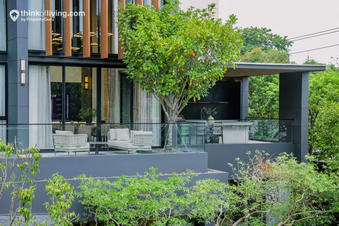 BBQ Terrace มีขนาดใหญ่วางโต๊ะรับประทานอาหารได้ 6 – 10 ที่นั่ง ใครที่ไม่ชอบอากาศร้อนของประเทศไทยก็สามารถกั้นเป็นห้องปรับอากาศให้ออกมาใช้งานได้ตลอดทั้งวันค่ะ
