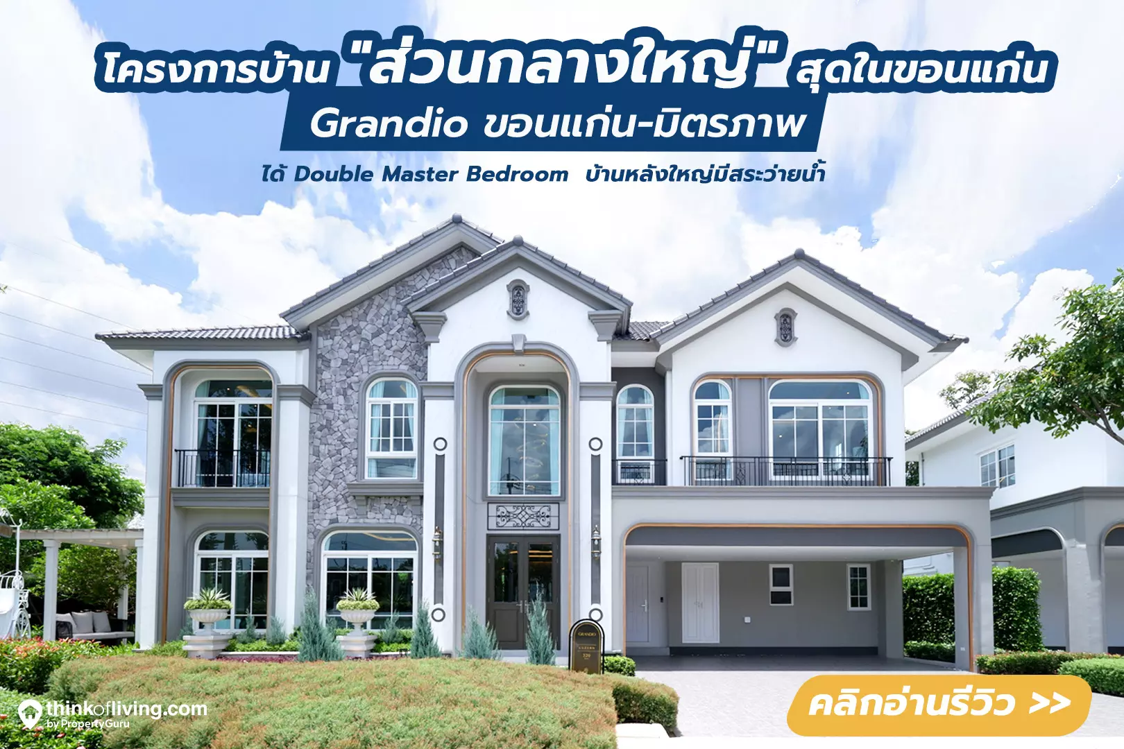 รีวิวฉบับที่ 2892 .. เปิดตัวโครงการ Grandio Khon Kaen-Mittraphap (แกรนดิโอ ขอนแก่น-มิตรภาพ) โครงการบ้านเดี่ยวและบ้านแฝด จาก Frasers Property ทำเลติดถนนมิตรภาพ รายล้อมไปด้วยแหล่งอุดมความสมบูรณ์ ทั้ง ประตูน้ำ​ ขอนแก่น , Makro , ตลาดอู้ฟู่ และตลาดต้นตาล ในราคาเริ่มต้น 4.99-14 ล้านบาท โดยโครงการมี Highlight ดังนี้