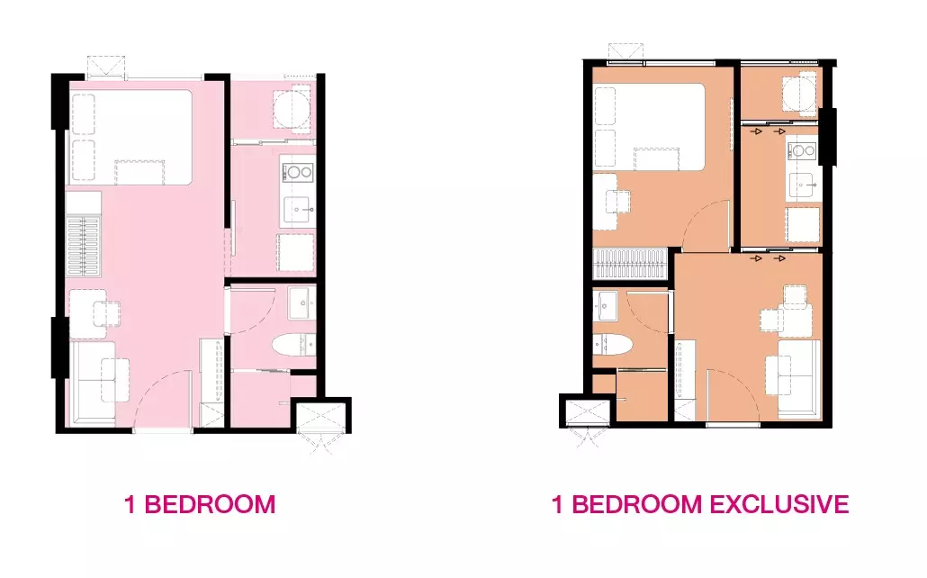 - 1 Bedroom Exclusive ขนาดพื้นที่ใช้สอย 25.70-27.20 ตร.ม.