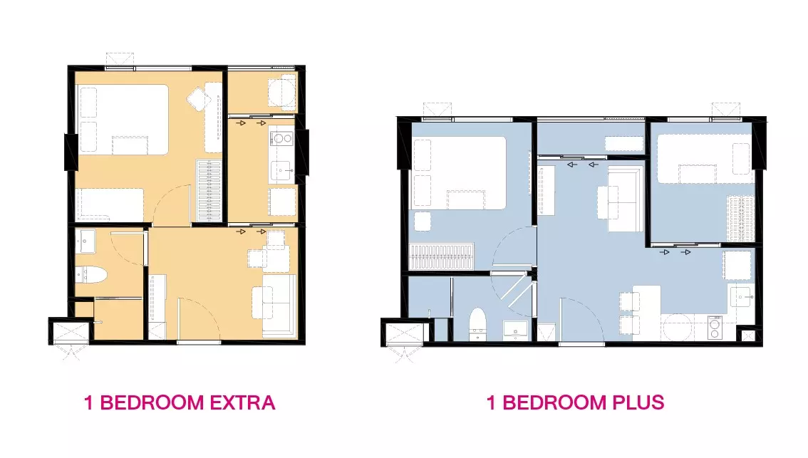 - 1 Bedroom Extra ขนาดพื้นที่ใช้สอย 29.80-30.60 ตร.ม.