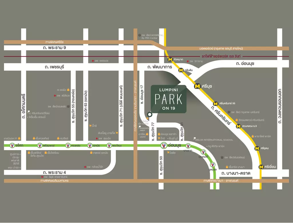- รพ.กรุงเทพ-นครินทร์ 3.6 กม.
