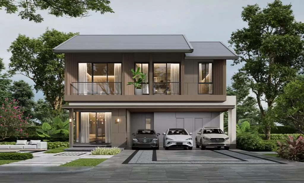 ตัวบ้านออกแบบมาในสไตล์ Modern Tropical ดูกลมกลืนไปกับธรรมชาติ โดยบ้านแฝดมีพื้นที่ใช้สอยตั้งแต่ 146.63 – 151.81 ตารางเมตร และบ้านเดี่ยวมีพื้นที่ใช้สอย 191.18 – 232.09 ตารางเมตร ในราคาเริ่มต้น 7.29 ล้านบาท
