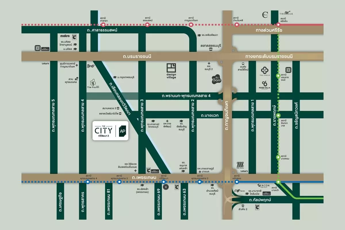 THE CITY Thawiwatthana 2 (เดอะ ซิตี้ ทวีวัฒนา 2) ตั้งอยุ่บนทำเลเชื่อม 3 ถนนหลัก บรมราชชนนี – เพชรเกษม – กาญจนาภิเษก เดินทางสะดวก พร้อมสิ่งอำนวยความสะดวกหลากหลาย ทั้งแหล่งช็อปปิ้ง โรงเรียน และโรงพยาบาล โดยรอบ